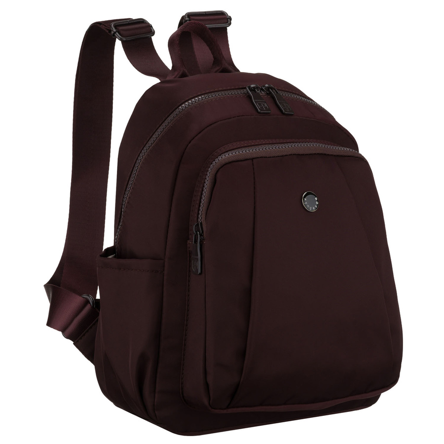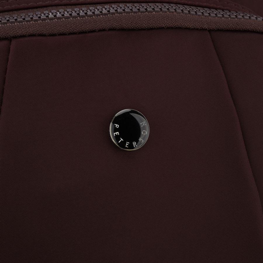 Bordowy plecak damski wykonany z poliestru, zawieszony na regulowanych szelkach - Peterson