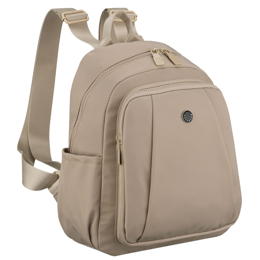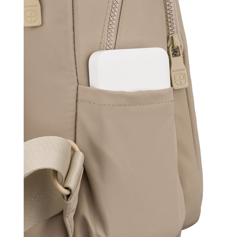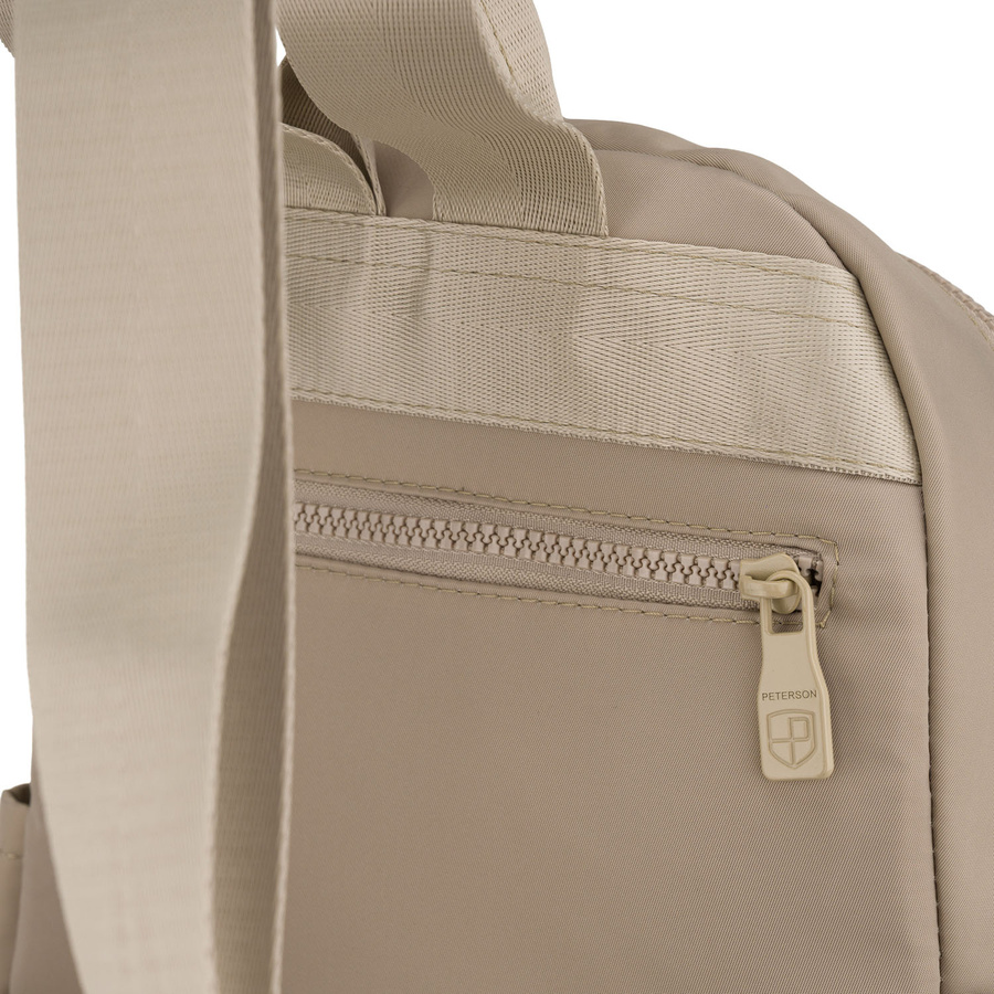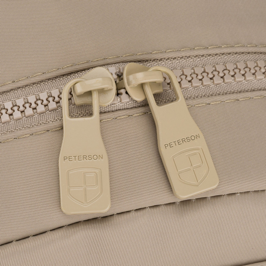 Praktyczny plecak damski wykonany z poliestru w kolorze ecru, jednokomorowy - Peterson