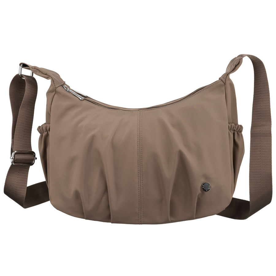 Ciemnobeżowa torebka damska z poliestru zamykana suwakiem - Peterson
