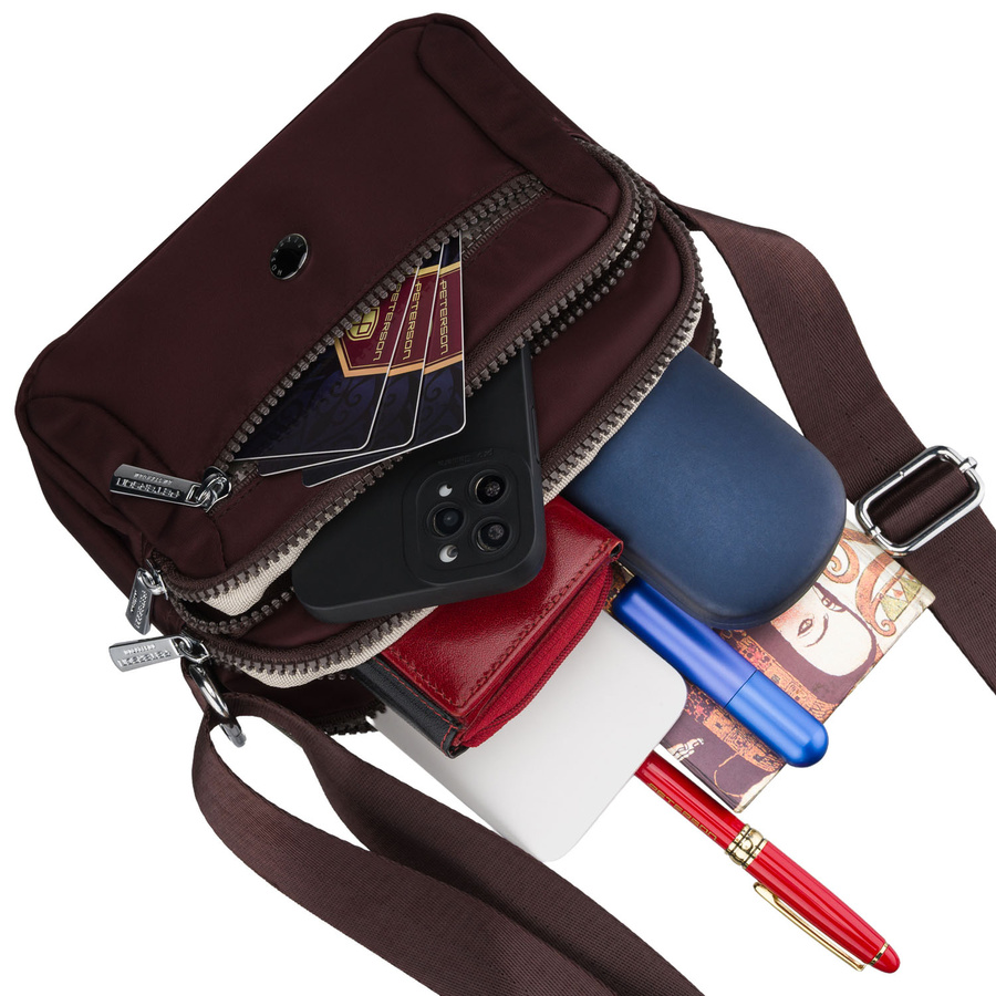 Bordowa listonoszka damska z poliestru zawieszona na regulowanym pasku - Peterson