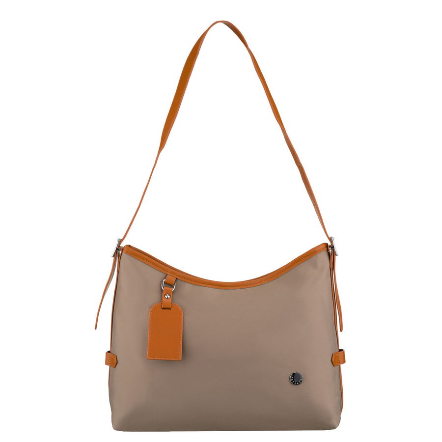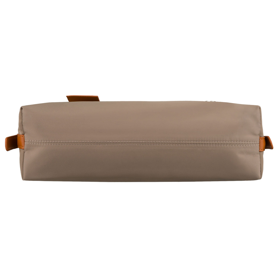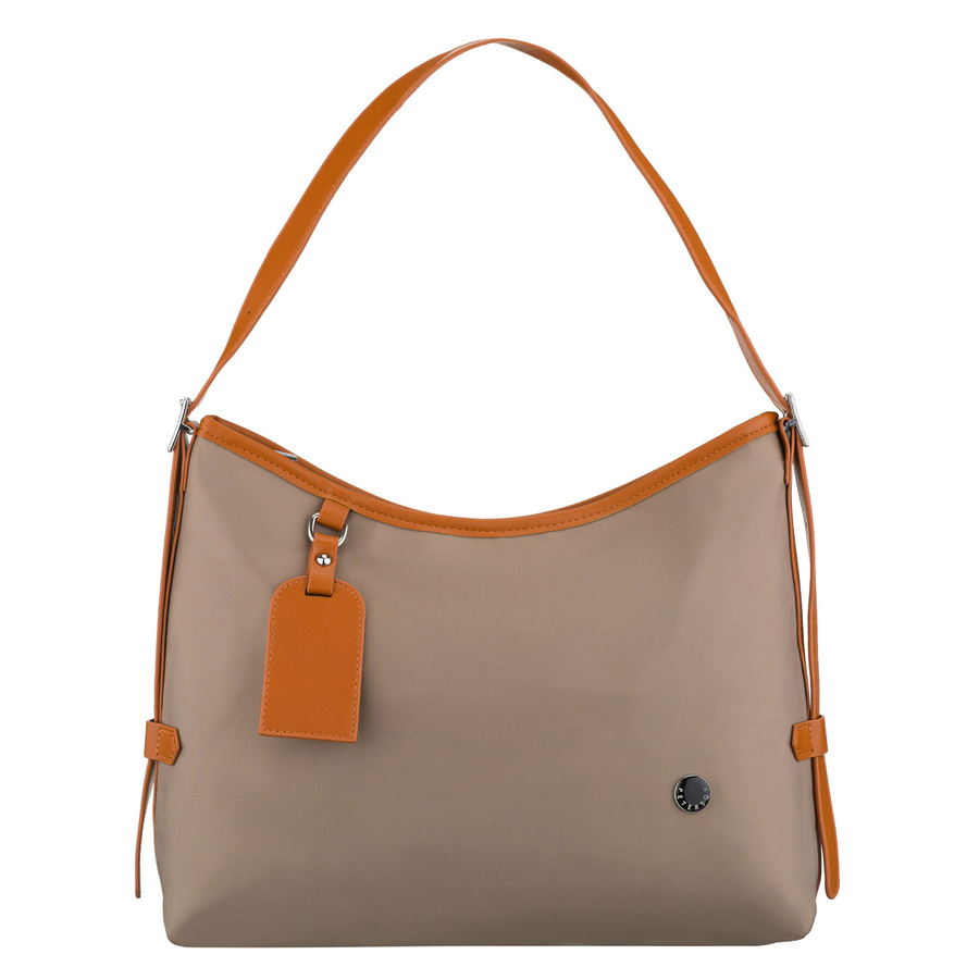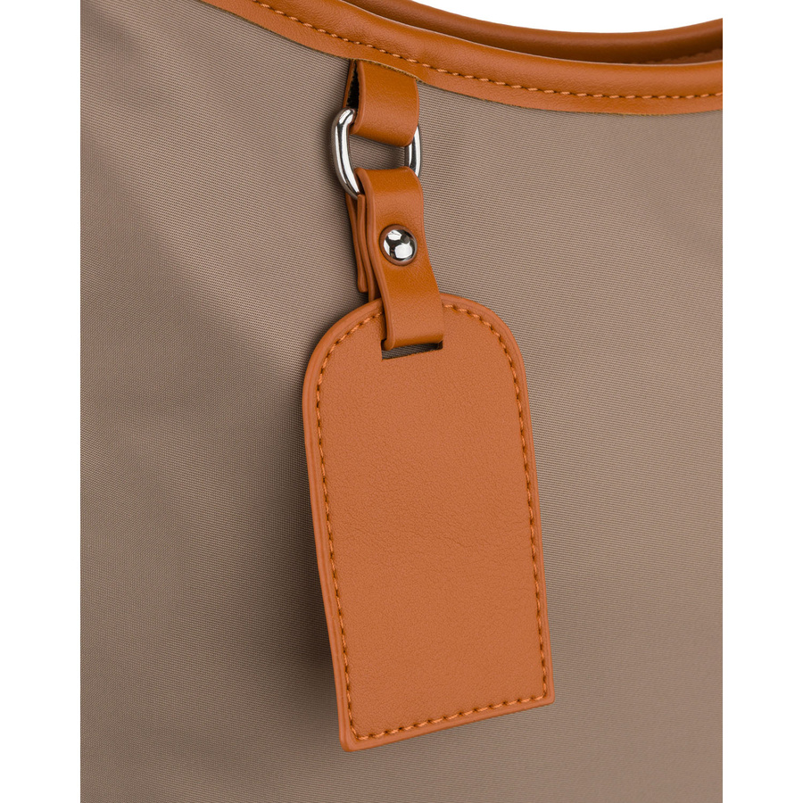 Beżowa listonoszka damska z poliestru i skóry ekologicznej wyposażona w kieszonkę zewnętrzną - Peterson
