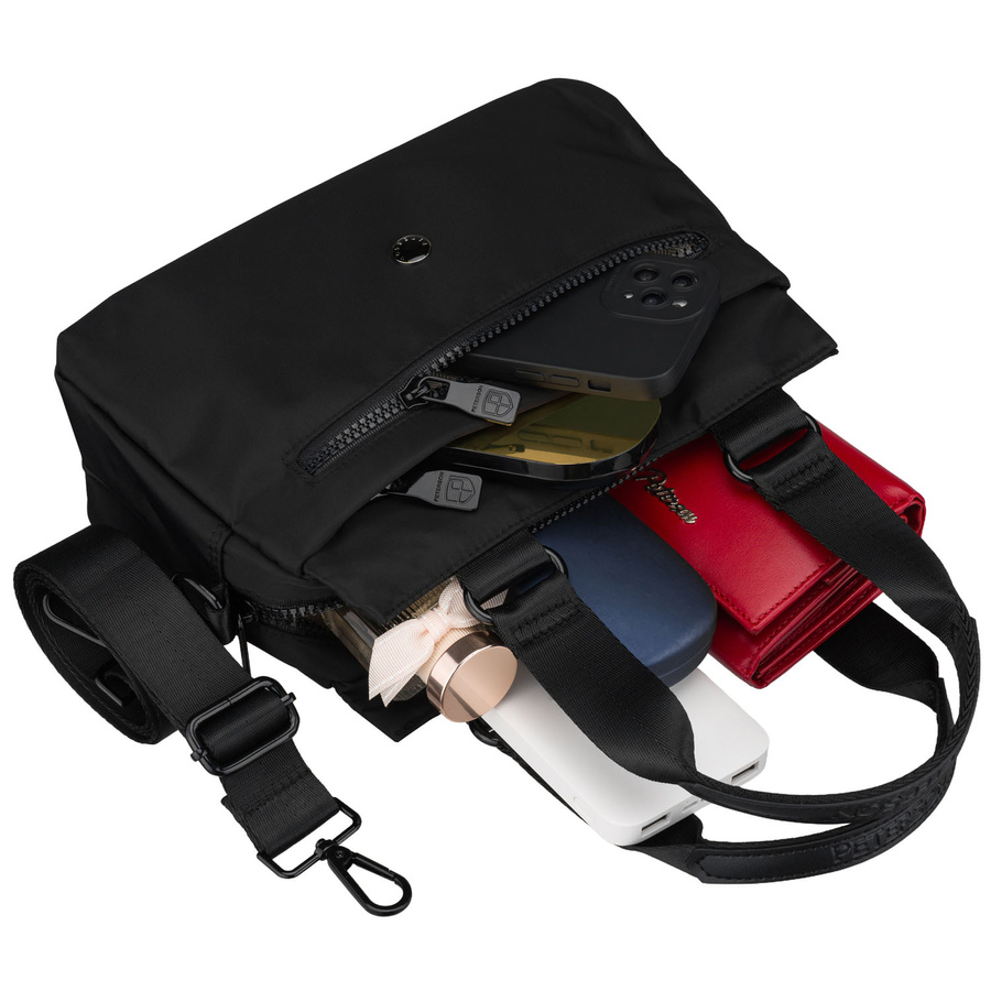 Czarna, miejska torebka damska z poliestru, jednokomorowa - Peterson