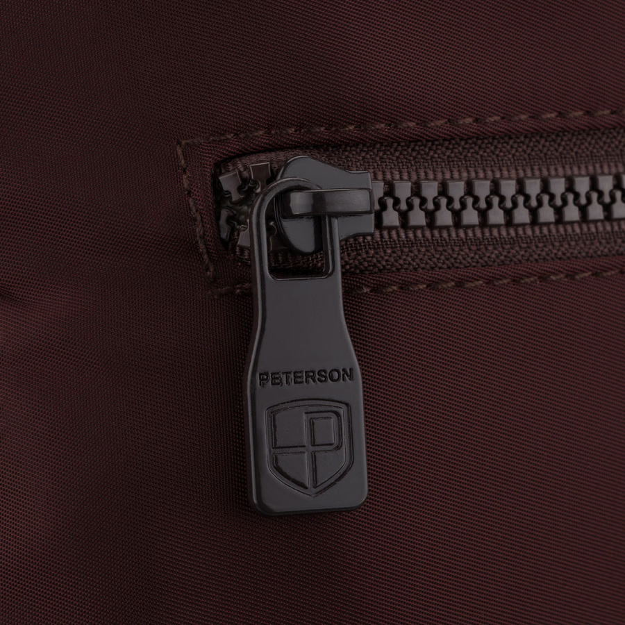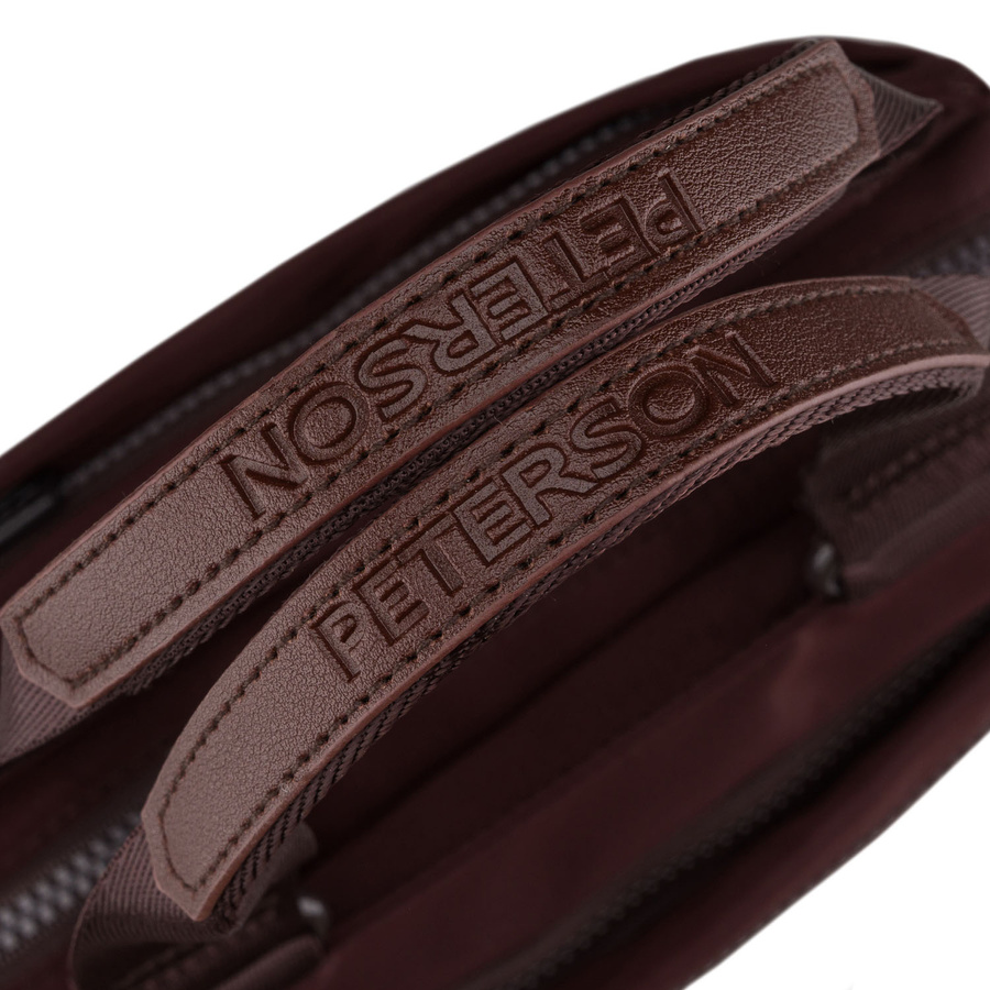 Listonoszka damska z poliestru w bordowym kolorze zawieszona na uchwytach i doczepianym pasku - Peterson