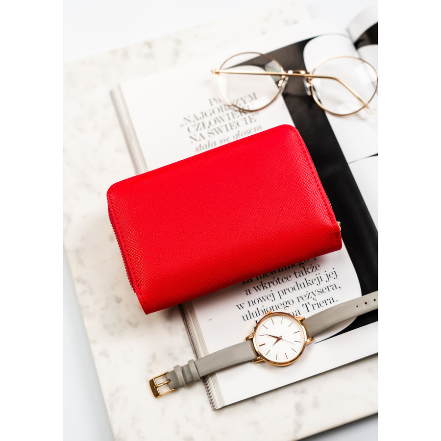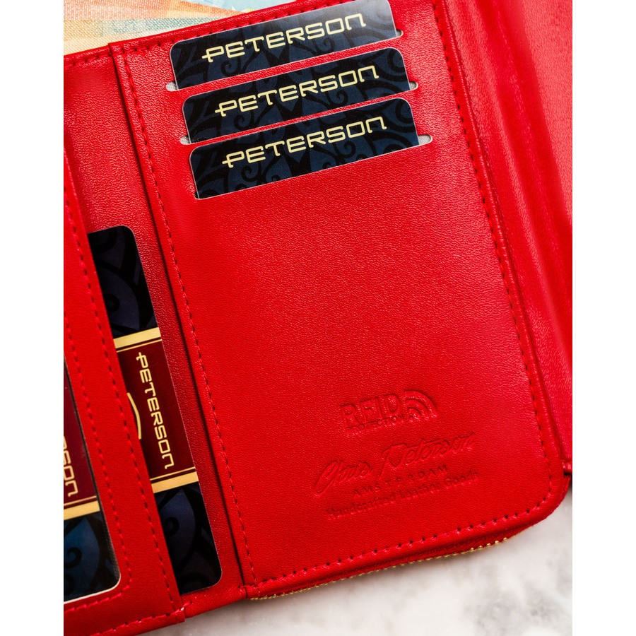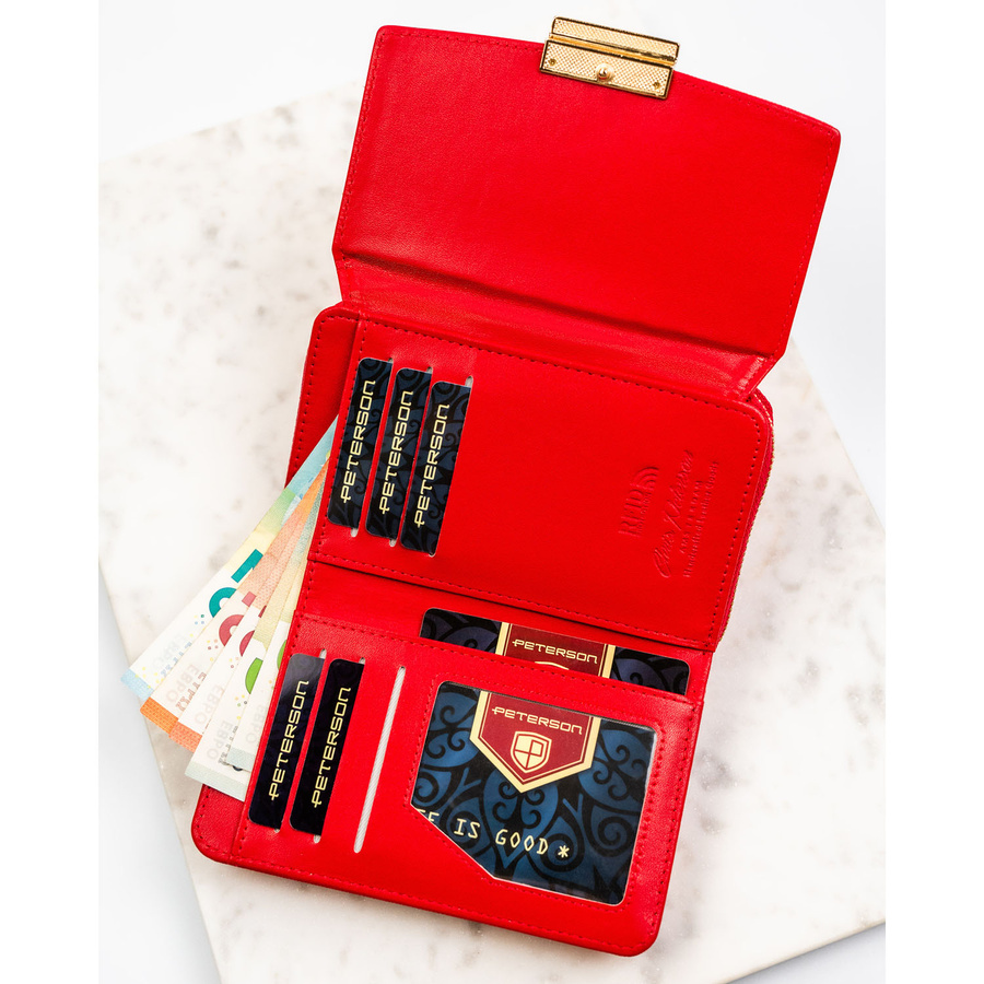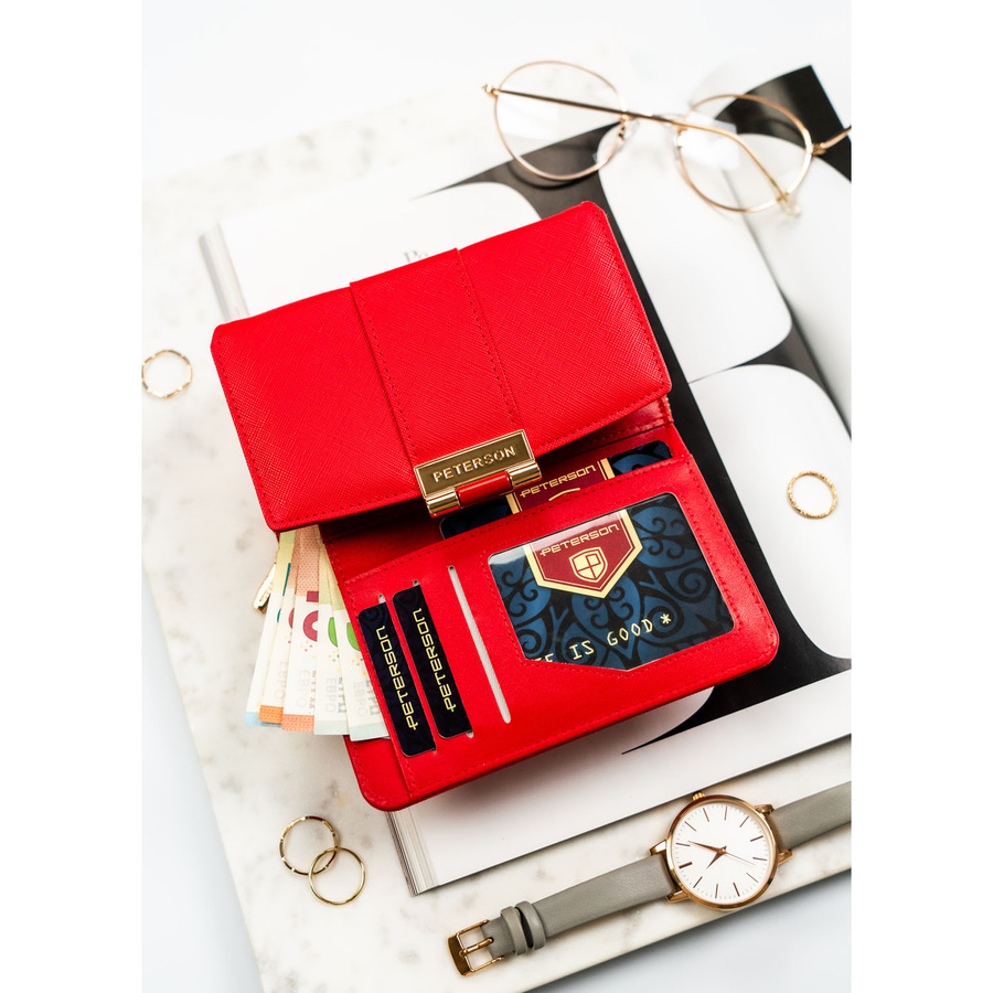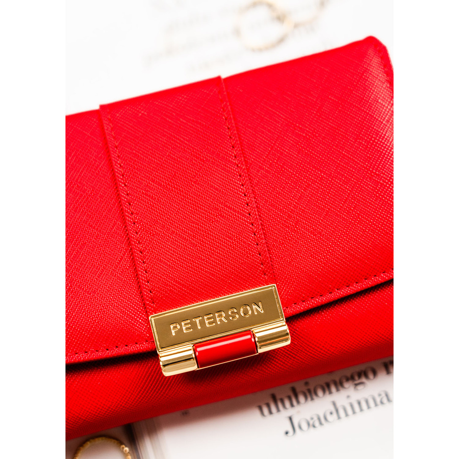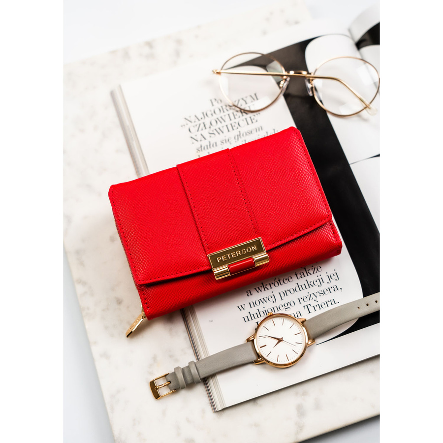 Poziomy portfel damski wykonany ze skóry ekologicznej w czerwonym kolorze - Peterson