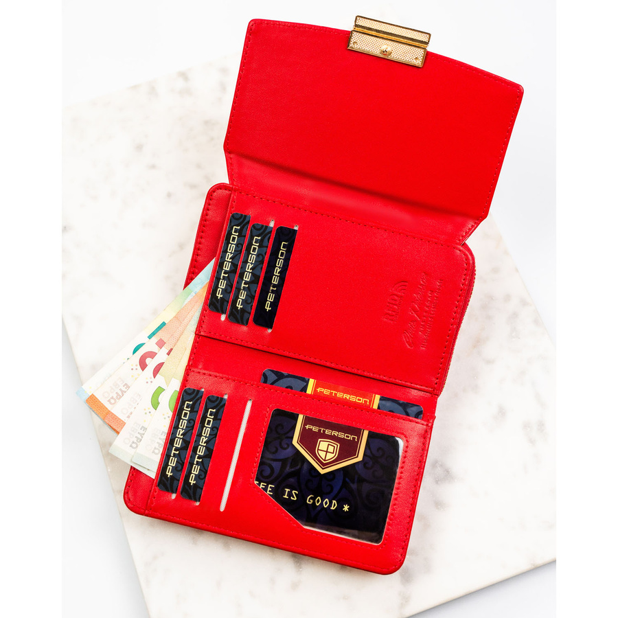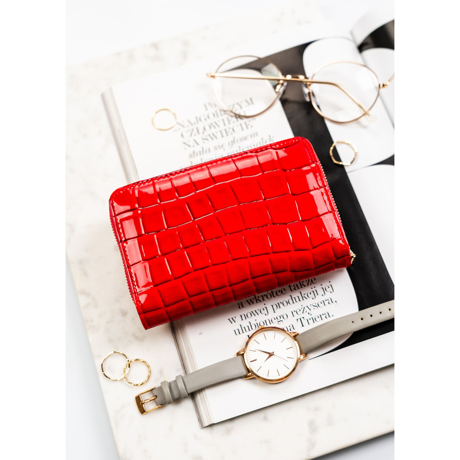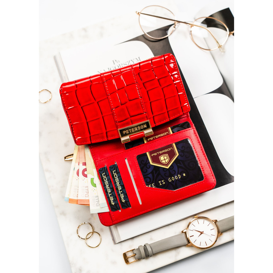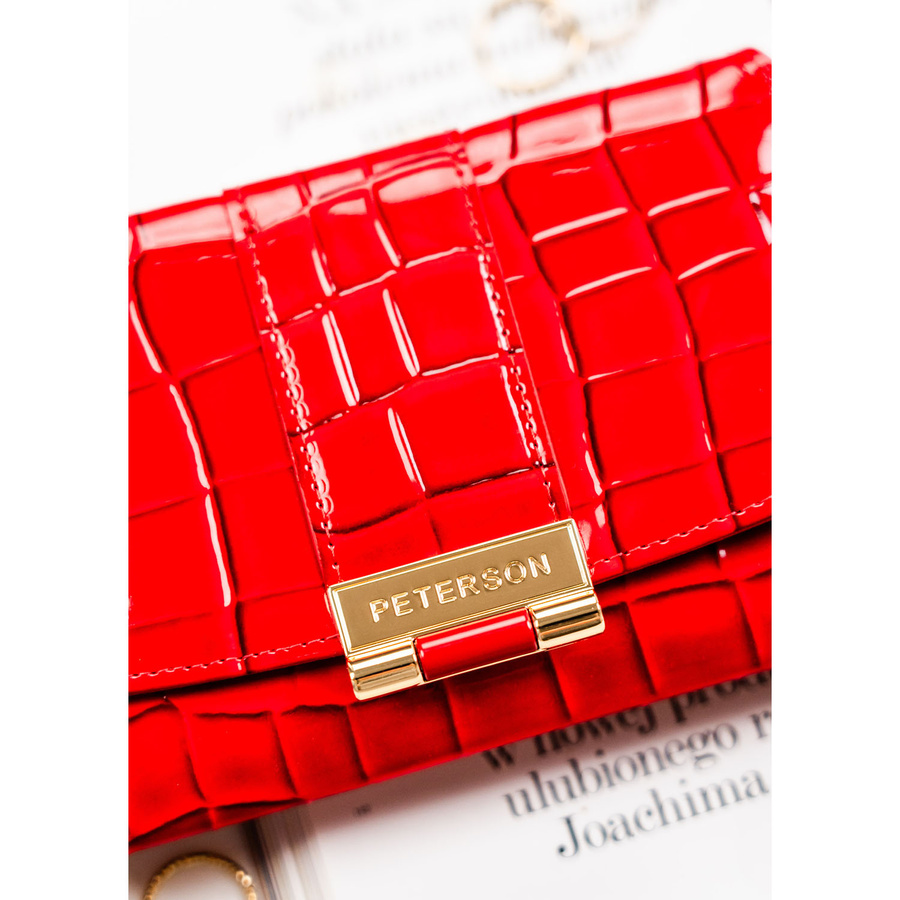 Portfel damski wykonany ze skóry ekologicznej w czerwonym kolorze z tłoczonym wzorem krokodylej skóry - Peterson