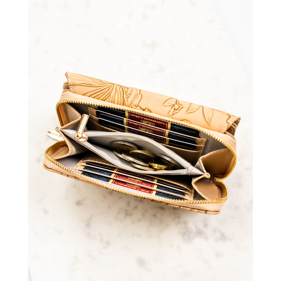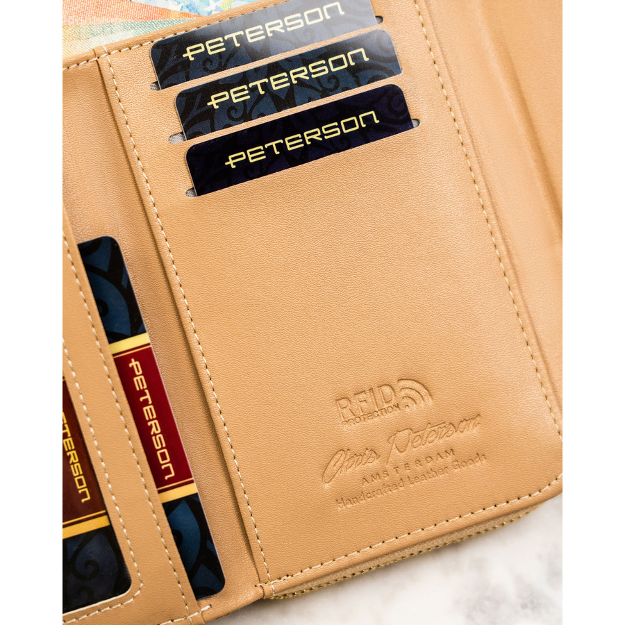 Elegancki portfel damski ze skóry ekologicznej w beżowym kolorze ze wzorem w kwiaty - Peterson