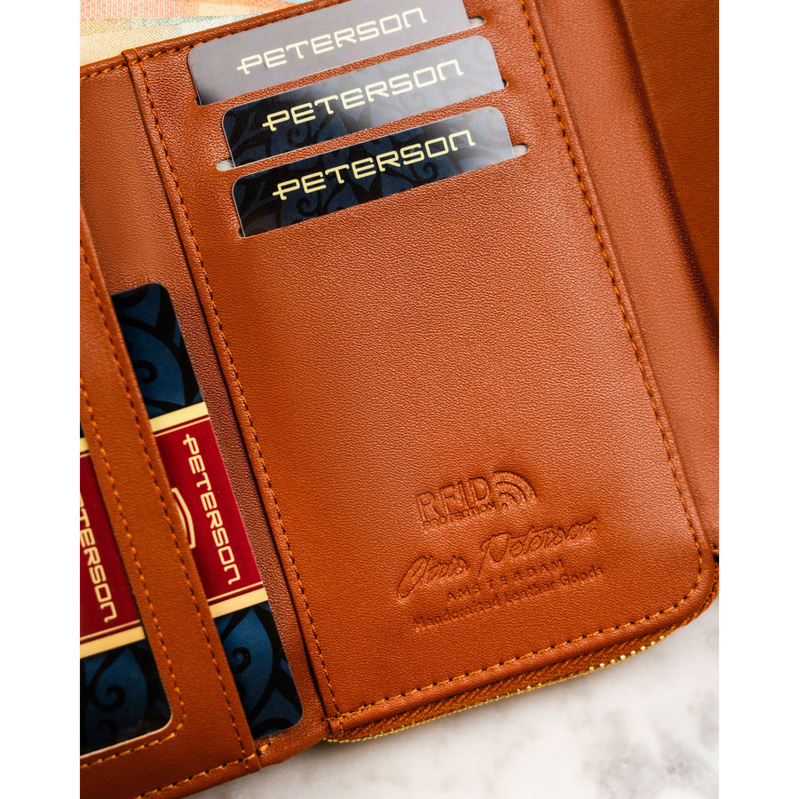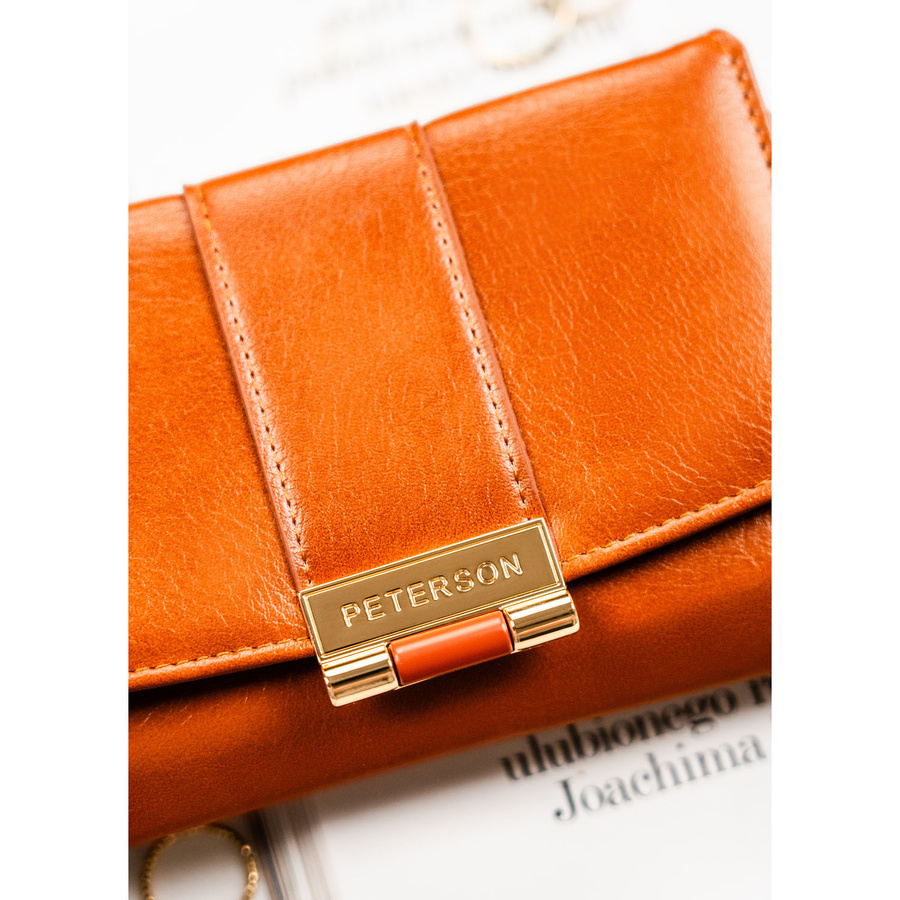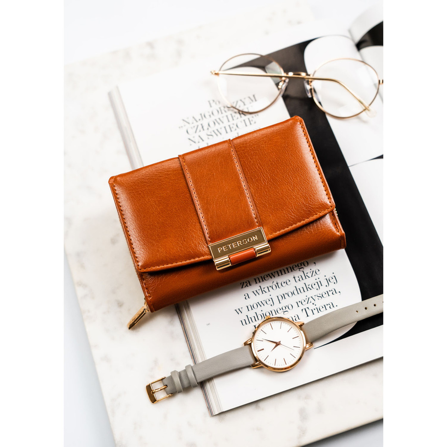 Brązowy portfel damski wykonany ze skóry ekologicznej i zamykany na zatrzask - Peterson