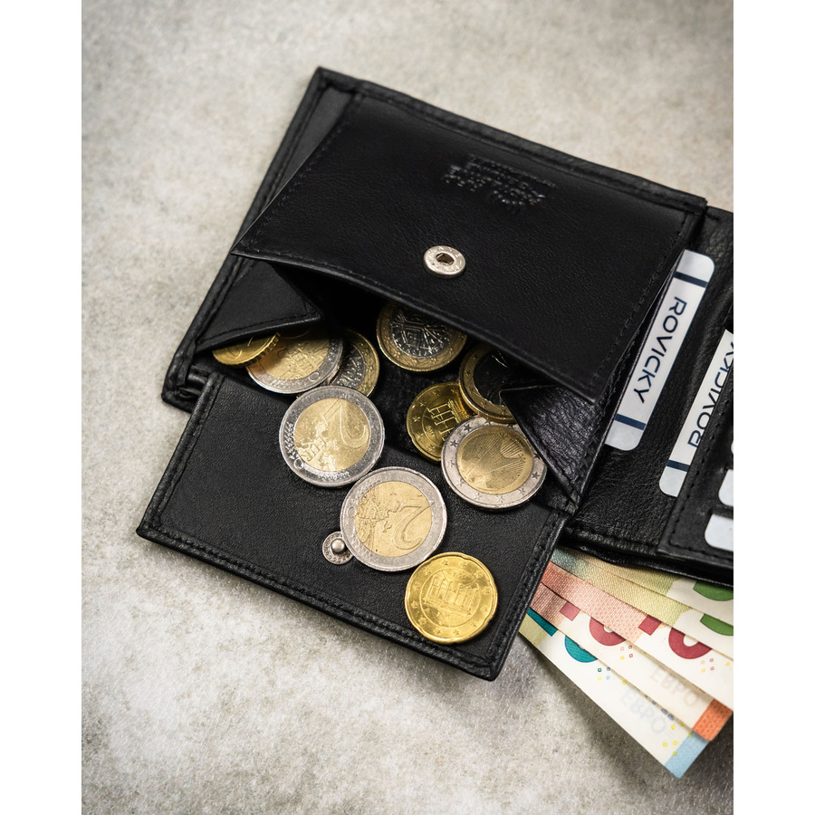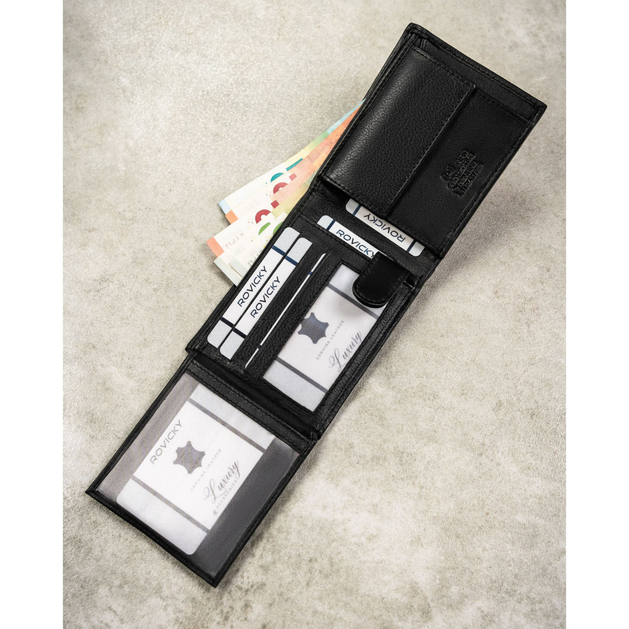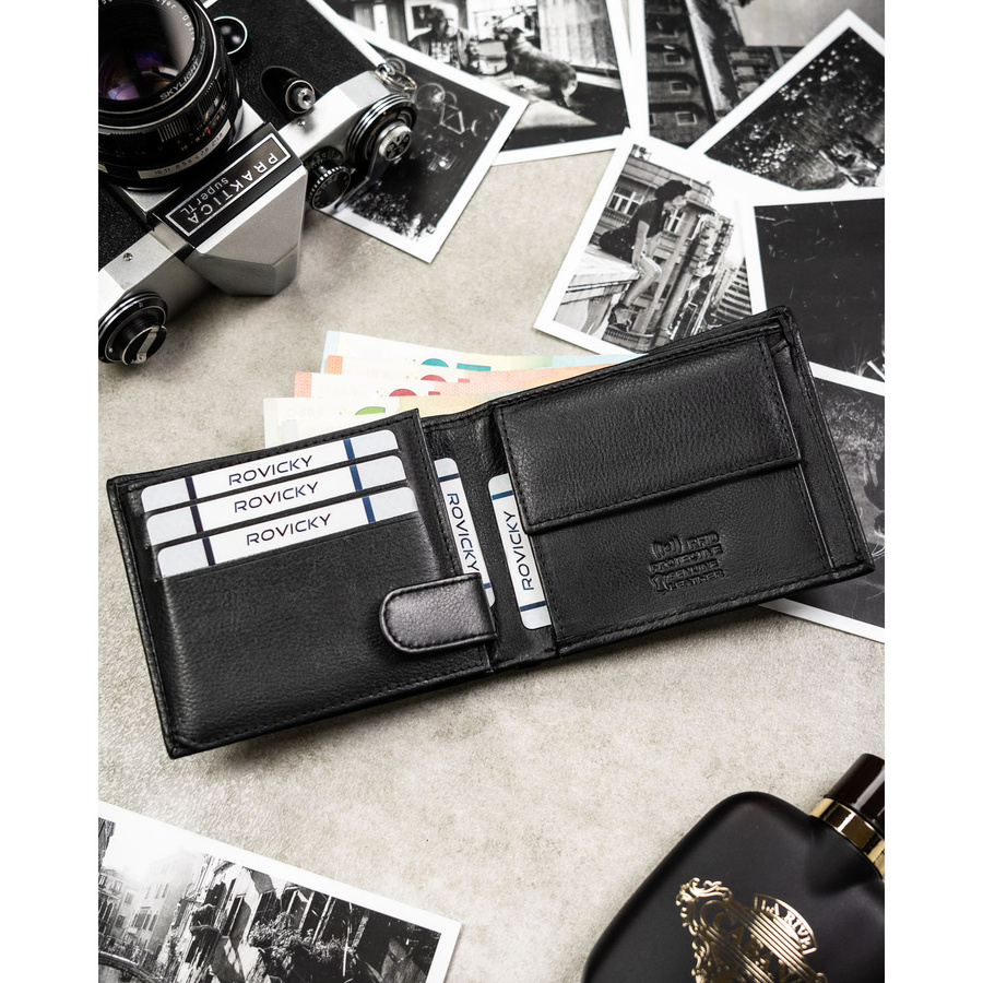 Stylowy, solidnie wykonany i zaprojektowany z myślą o wygodzie codziennego użytkowania. Portfel ROVICKY to propozycja dla mężczyzn, którzy cenią minimalizm, jakość i niezawodność. Naturalna skóra nadaje mu elegancji, a przemyślany układ przegródek - funkcjonalności na co dzień.