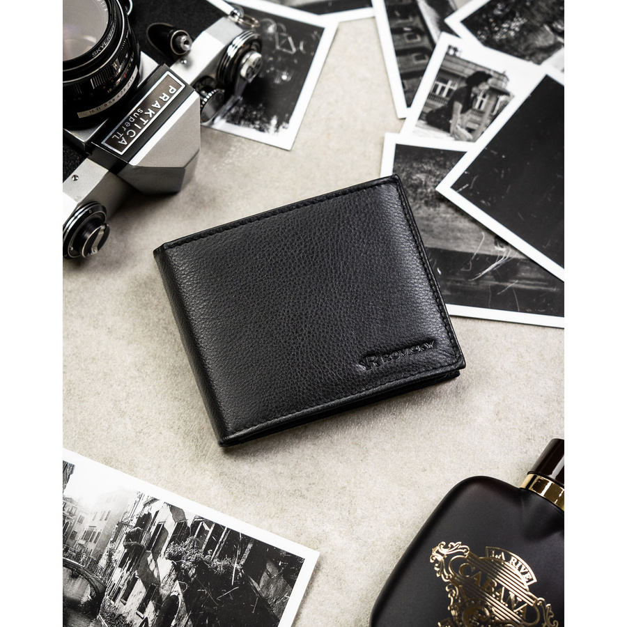 Duży, czarny portfel męski ze skóry naturalnej wyposażony w system RFID - Rovicky