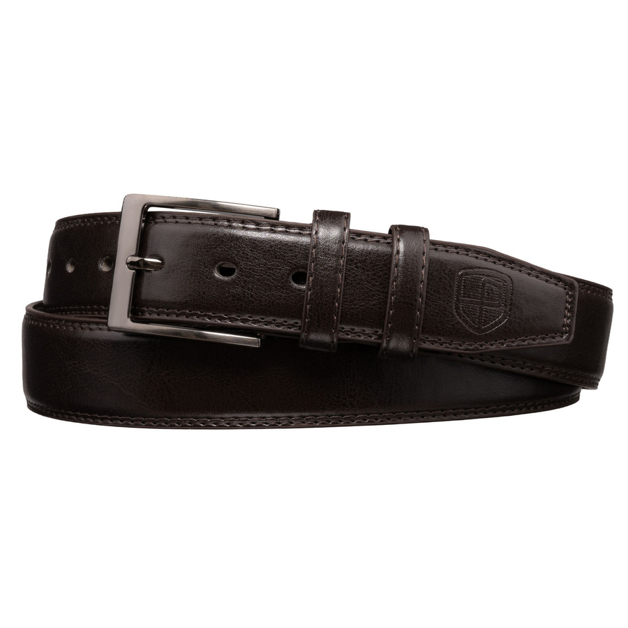 Brązowy, męski pasek ze skóry ekologicznej z tradycyjną klamrą - Peterson