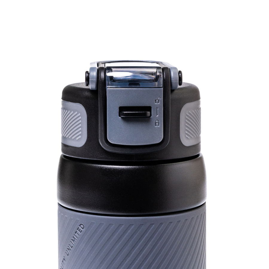 - Prosta obsługa jedną ręką – przesuwasz blokadę kciukiem, naciskasz przycisk, pijesz.