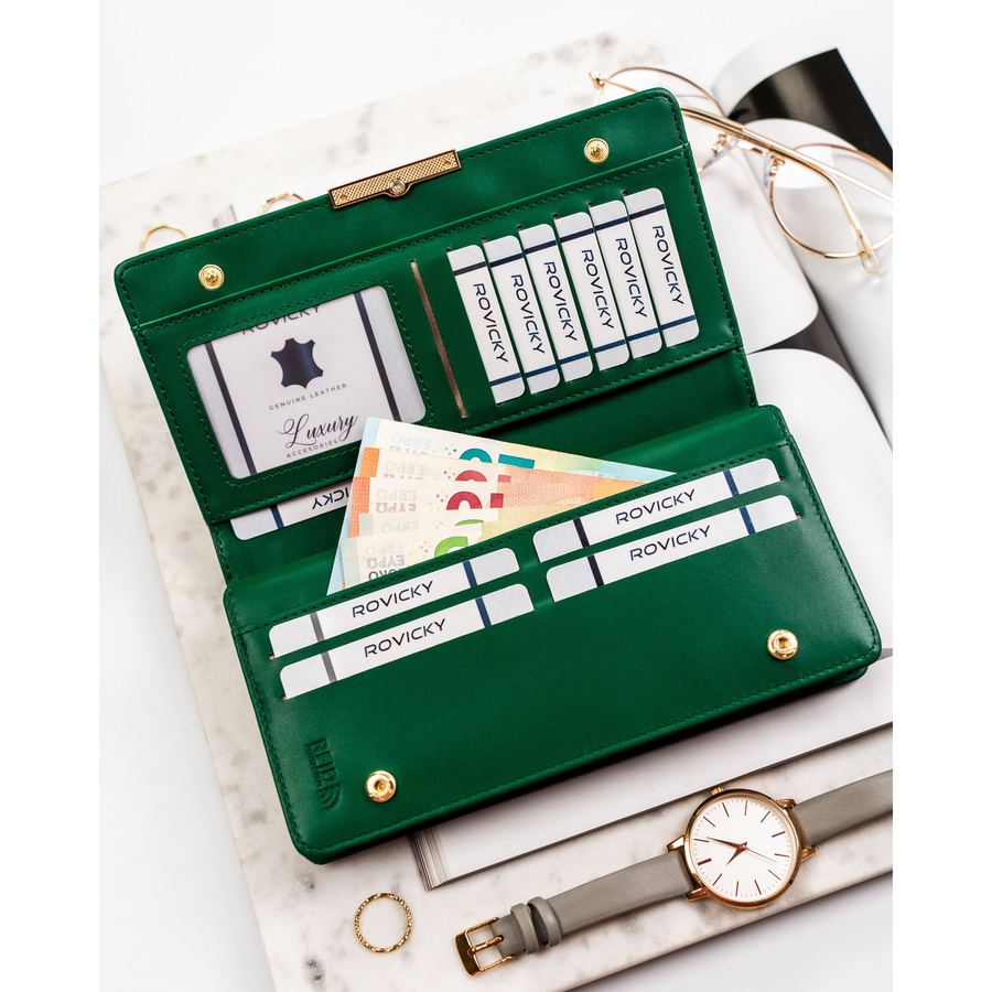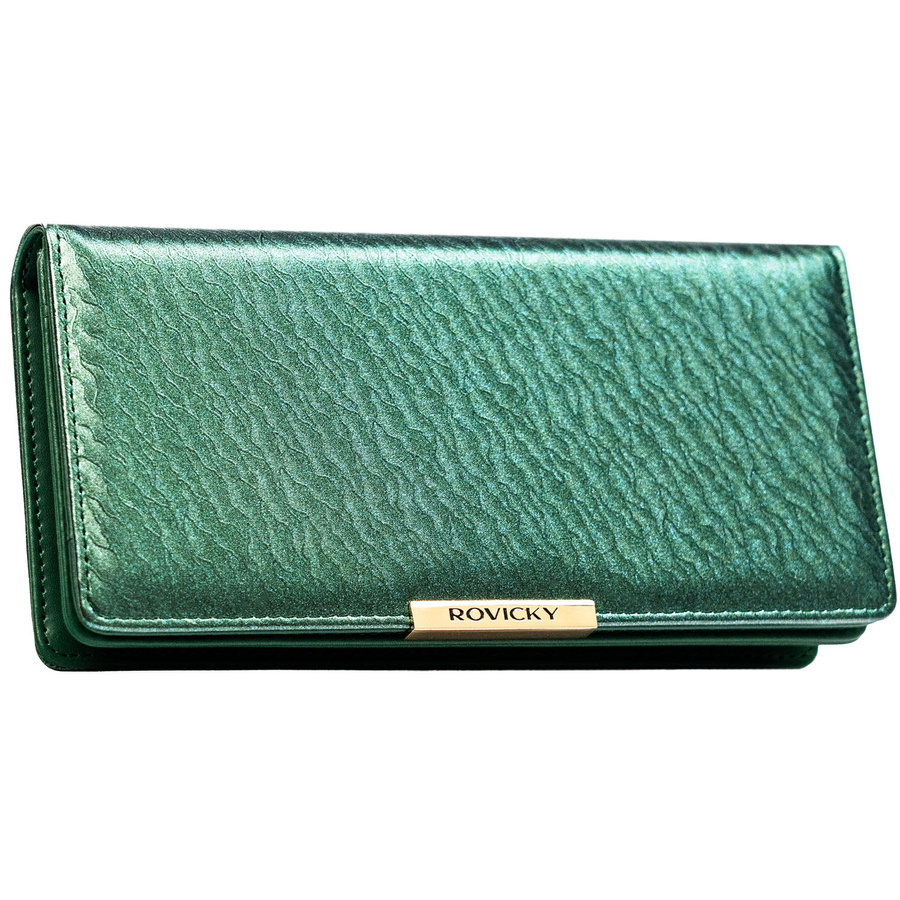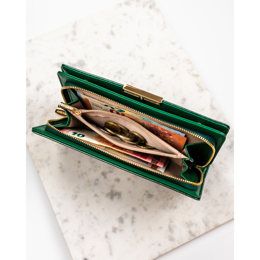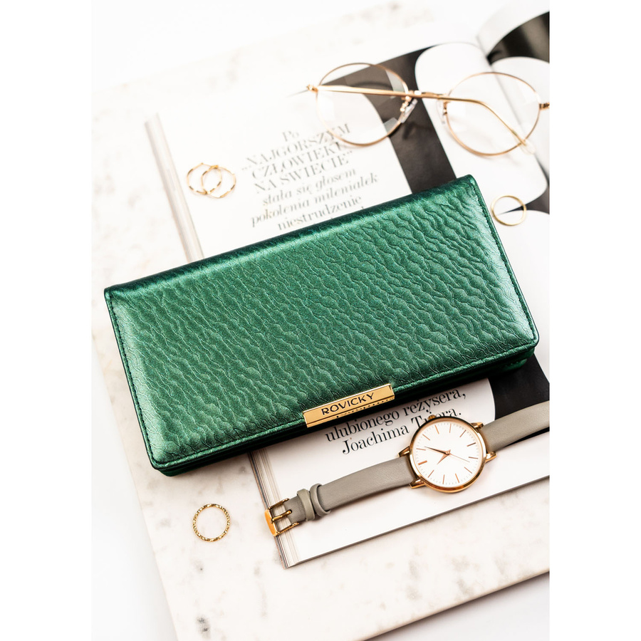 Portfel damski ze skóry ekologicznej w zielonym kolorze, wyposażony w system RFID - Rovicky