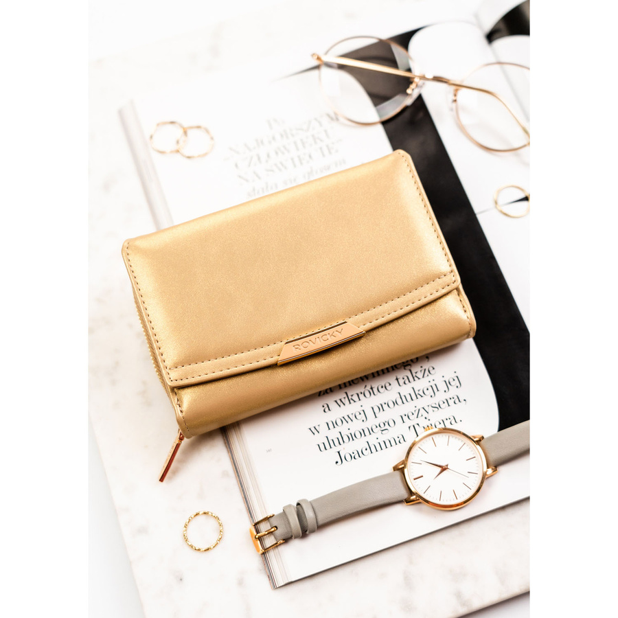 Portfel damski Rovicky przyciąga uwagę swoim eleganckim wykończeniem i dopracowaną formą, która od razu sugeruje wysoką jakość. To model, który świetnie odnajduje się w codziennym tempie — jest poręczny, funkcjonalny i gotowy na szybkie sięgnięcie po najważniejsze drobiazgi. Każdy element jego konstrukcji został przemyślany tak, aby łączył wygodę użytkowania z nowoczesnym stylem.