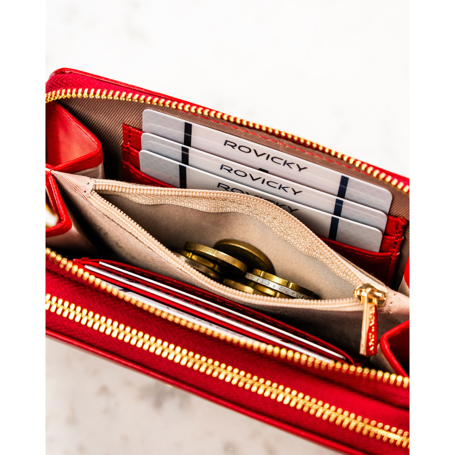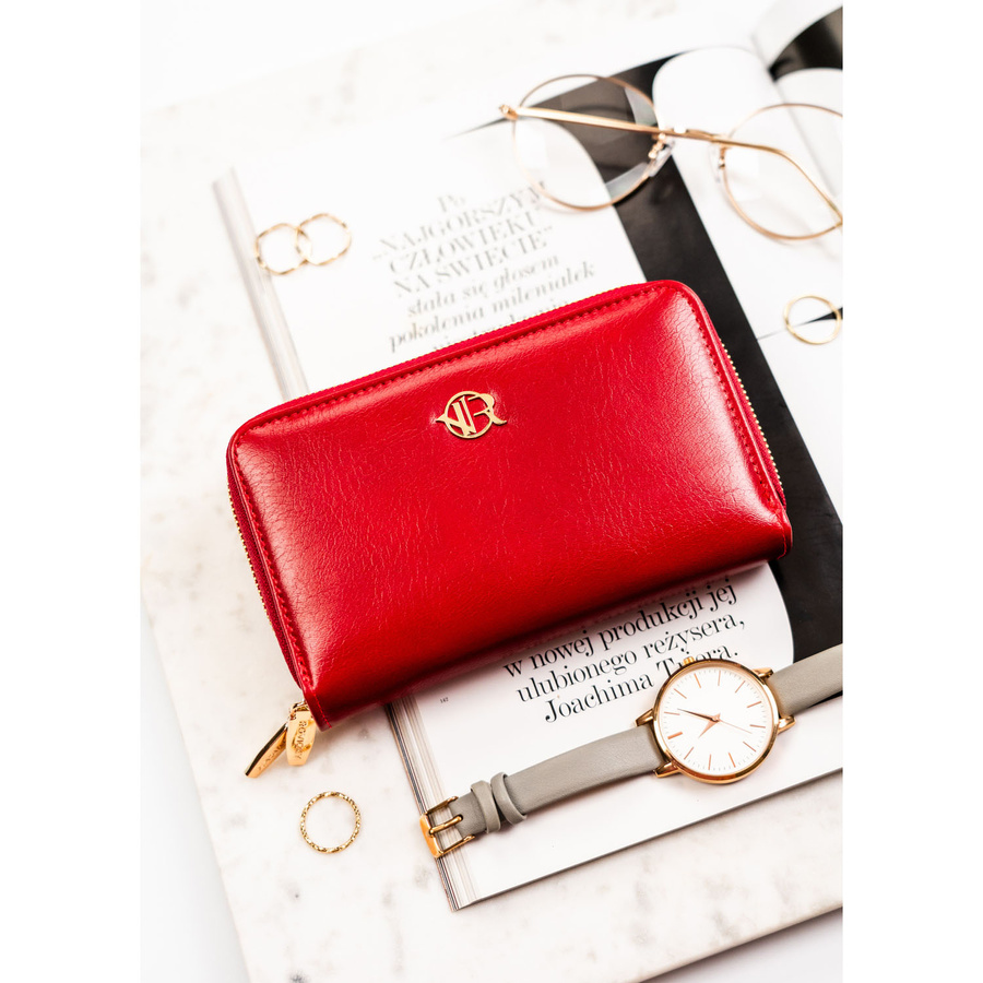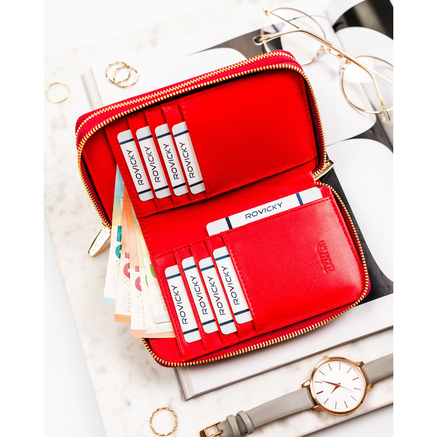 Czerwony portfel-piórnik damski ze skóry ekologicznej zamykany suwakiem - Rovicky
