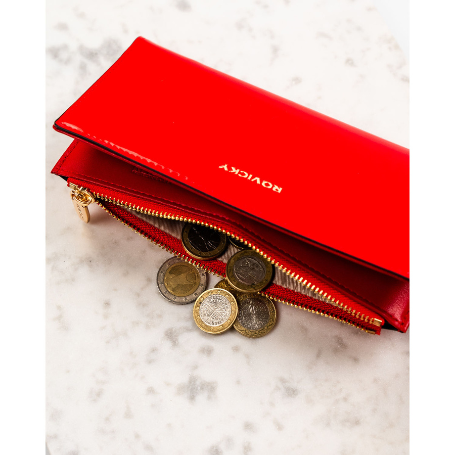 Szukasz portfela, który będzie jednocześnie elegancki, pojemny i wygodny w codziennym użytkowaniu? Ten model ROVICKY to stylowa portmonetka stworzona z myślą o kobietach ceniących funkcjonalność, jakość i klasyczne wzornictwo. Lakierowane wykończenie nadaje mu luksusowego charakteru, a starannie dopracowany układ wnętrza pozwala zachować idealny porządek.
