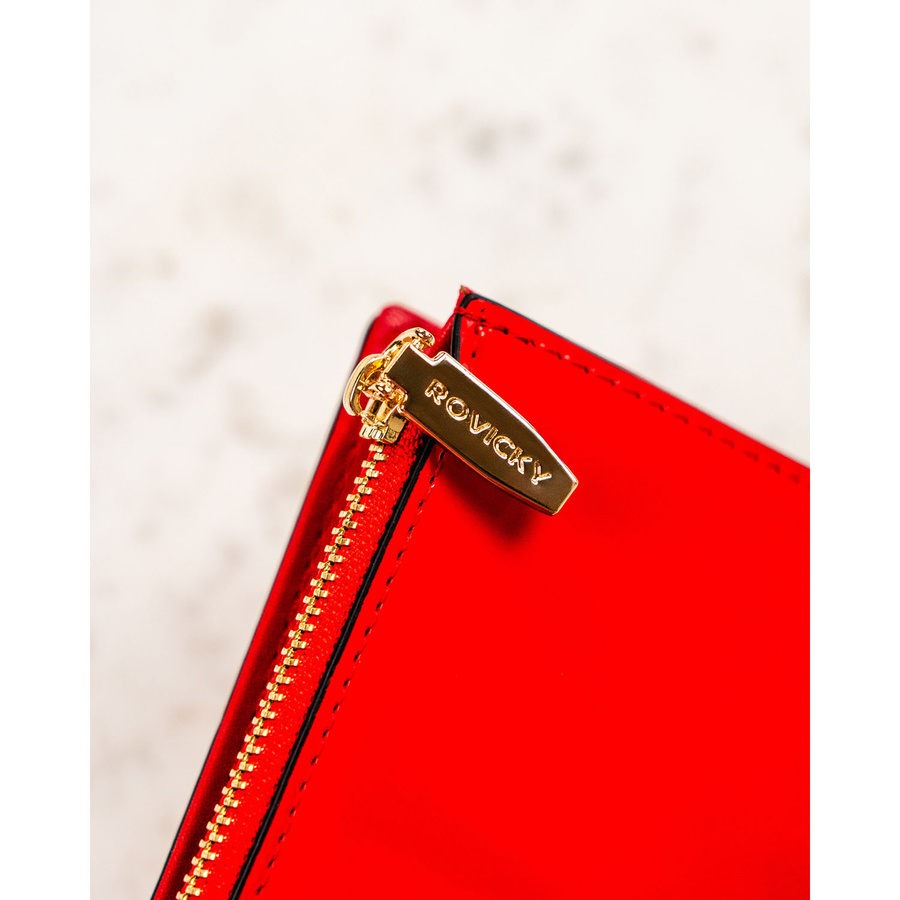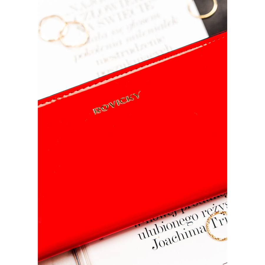 Czerwony, duży portfel damski ze skóry ekologicznej zamykany suwakiem i zatrzaskiem - Rovicky