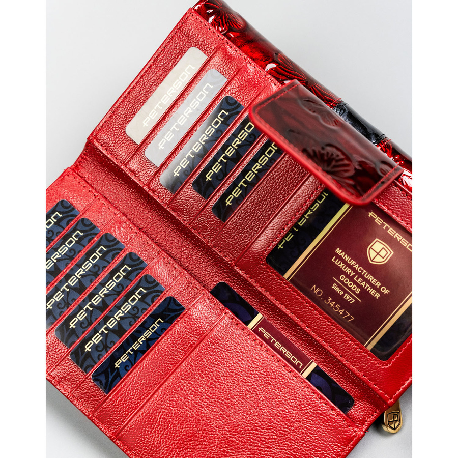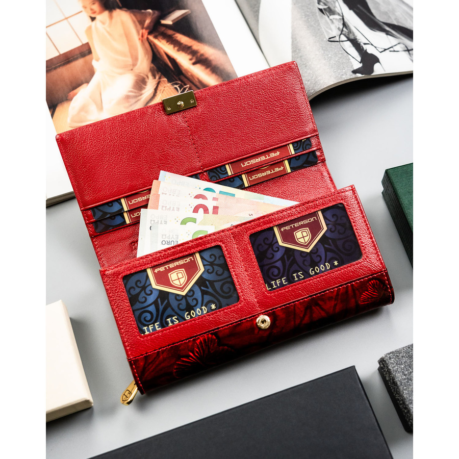 Elegancki portfel damski ze skóry naturalnej w czerwonym kolorze, zamykany zatrzaskiem - Peterson