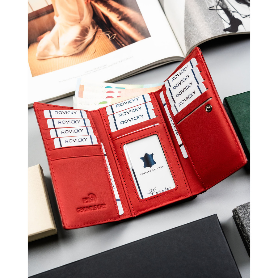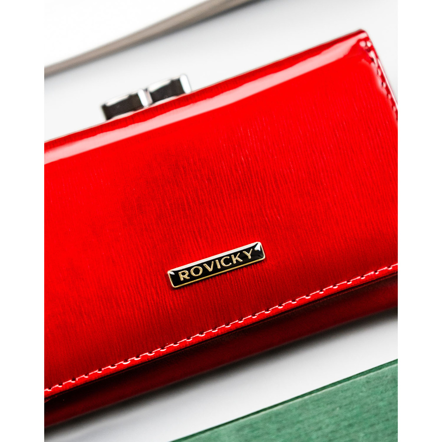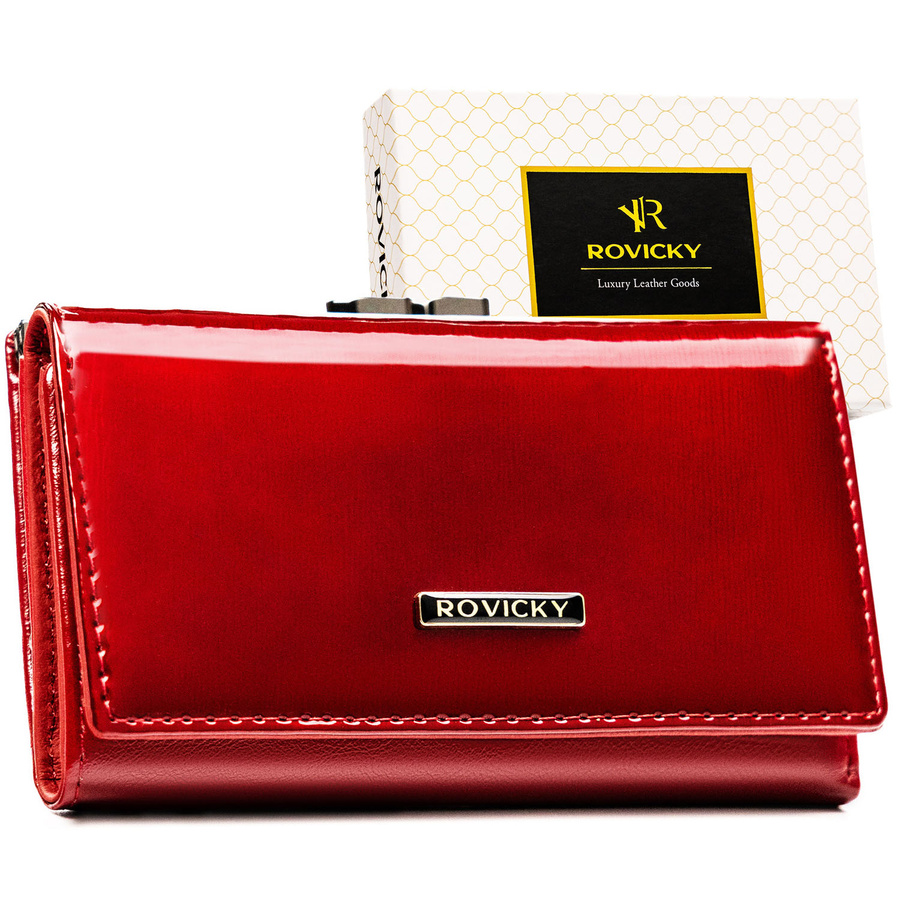 Lakierowany portfel damski ze skóry naturalnej i ekologicznej w czerwonym kolorze - Rovicky