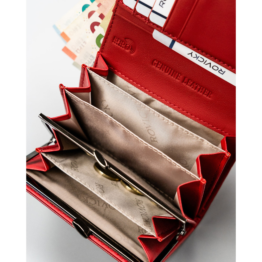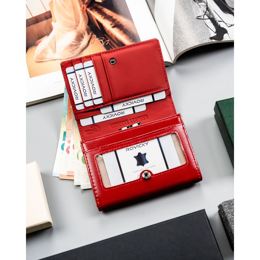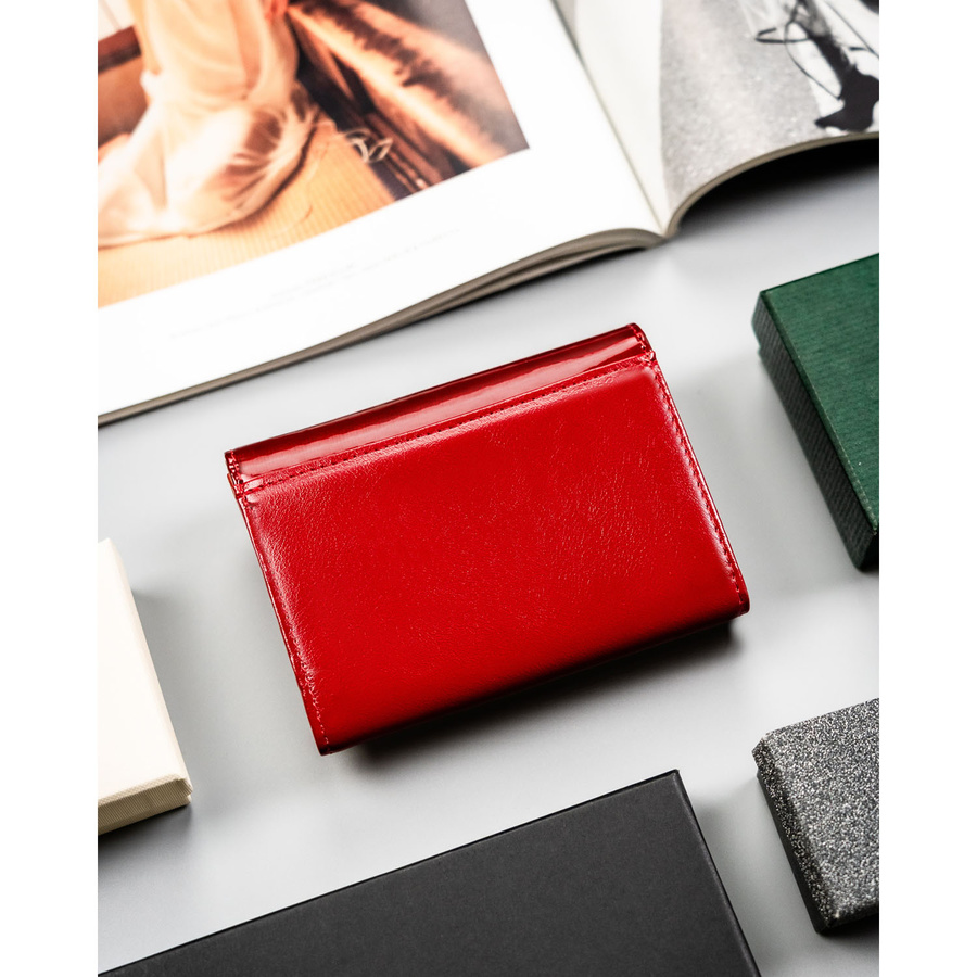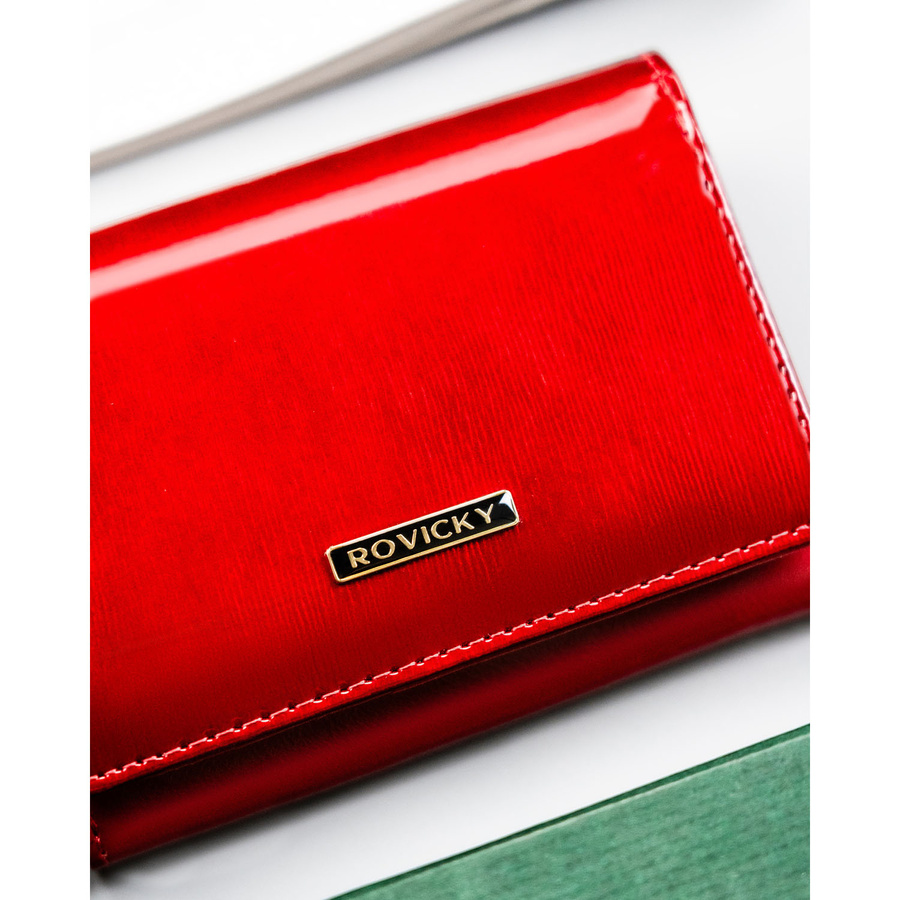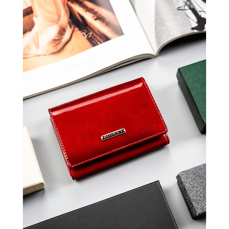 Duży, lakierowany portfel damski ze skóry naturalnej i ekologicznej w czerwonym kolorze, zamykany na zatrzask - Rovicky