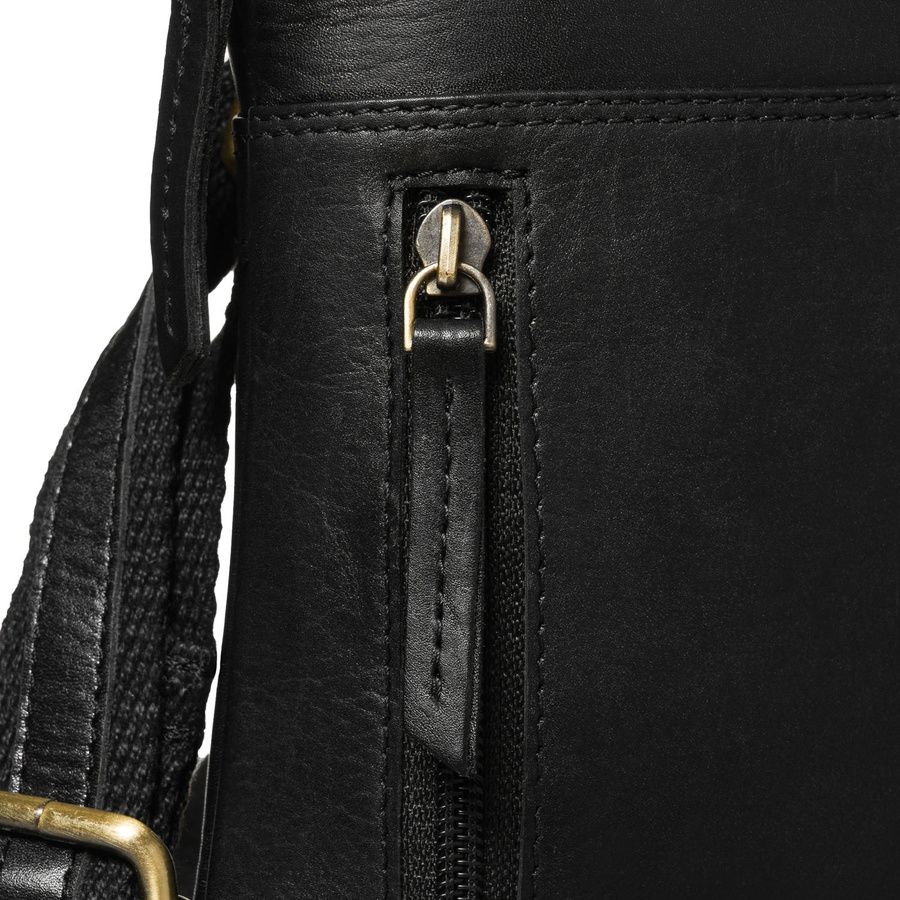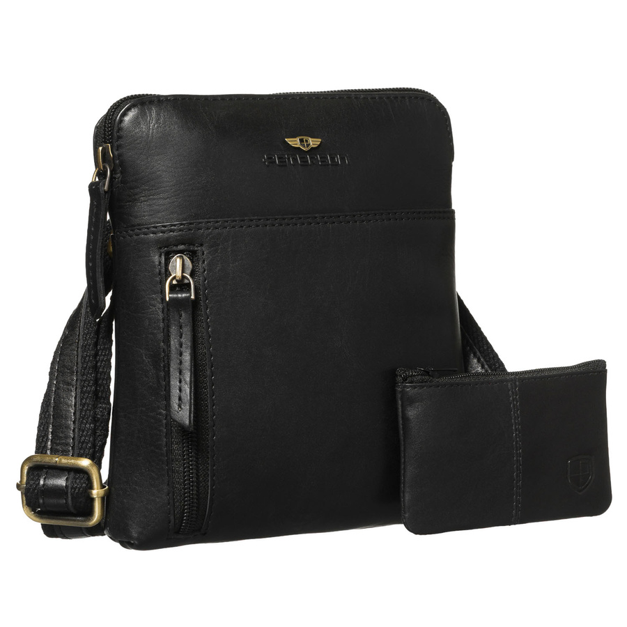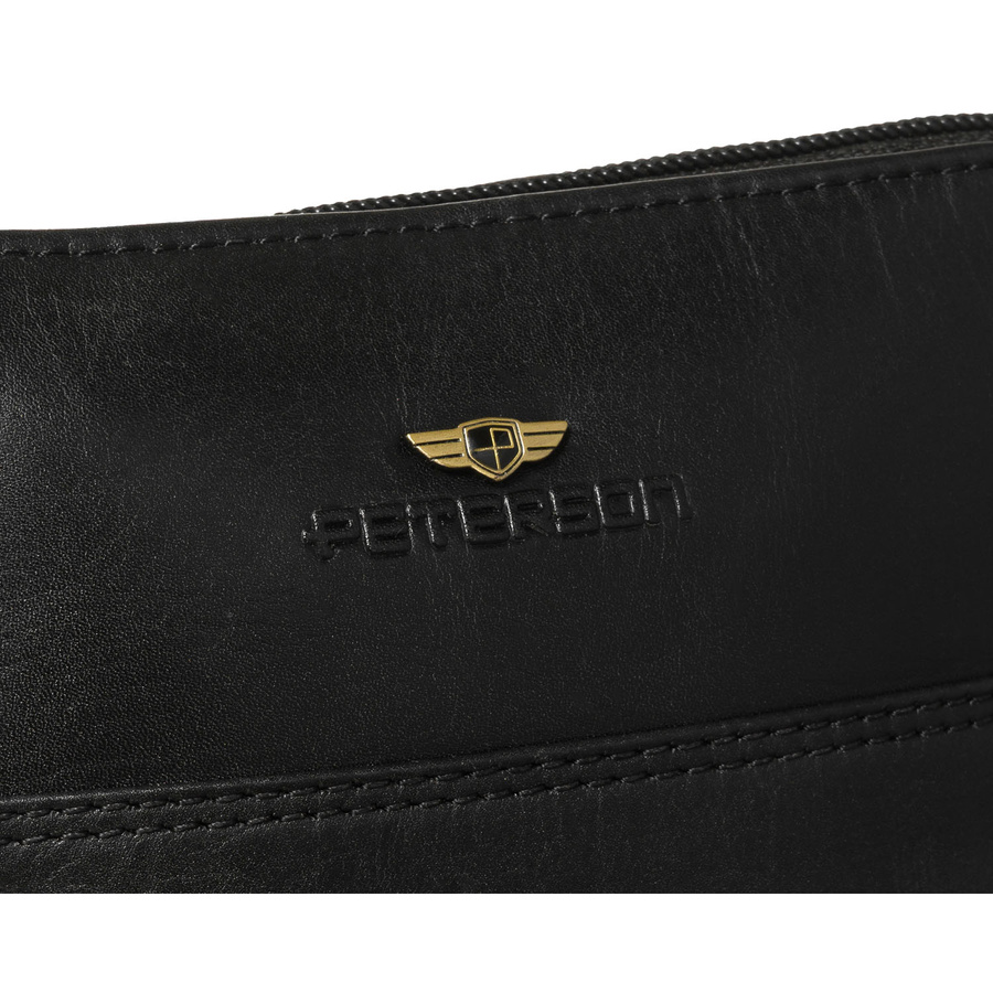 Listonoszka męska ze skóry naturalnej w czarnym kolorze, jednokomorowa i zamykana suwakiem - Peterson