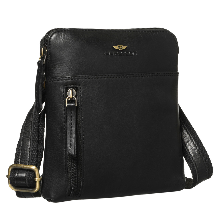 • Męska, czarna listonoszka wykonana ze skóry naturalnej. Jednokomorowa z 3 dodatkowymi kieszonkami. Zamykana bezpiecznym suwakiem i zawieszona na regulowanym pasku.