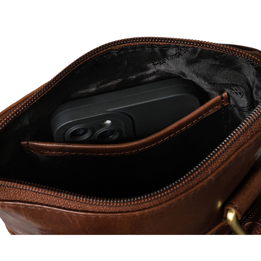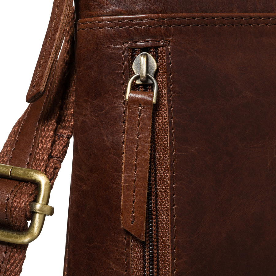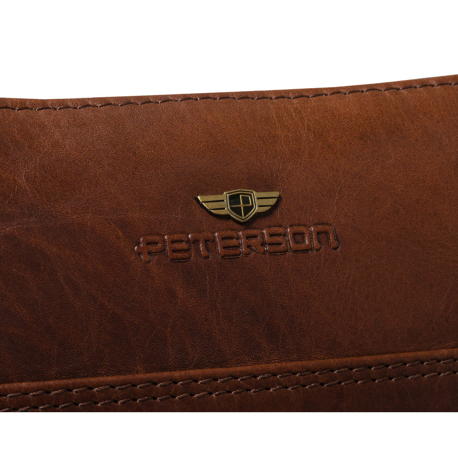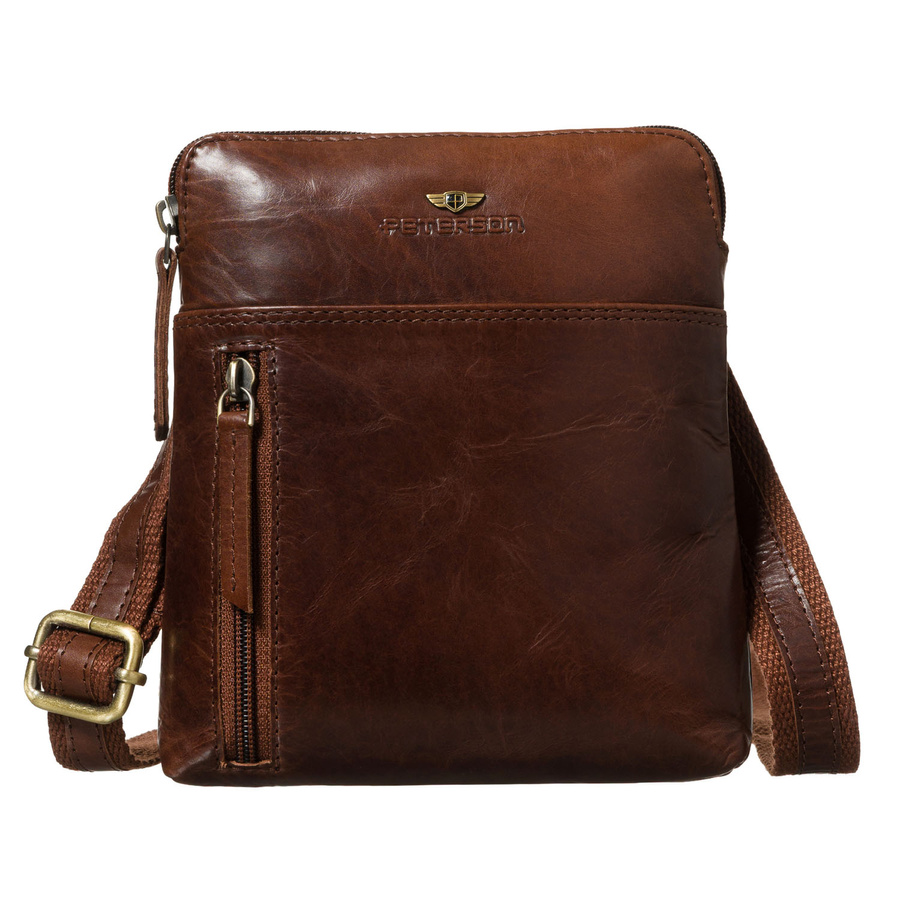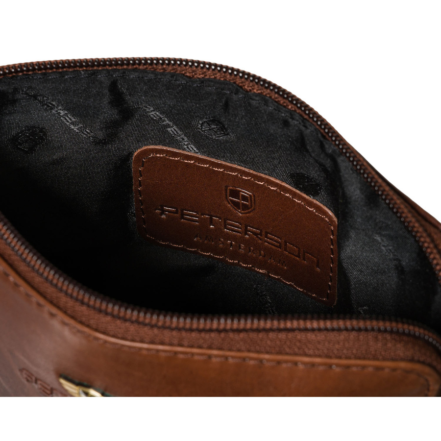 Listonoszka męska ze skóry naturalnej w brązowym kolorze, jednokomorowa i zamykana suwakiem - Peterson