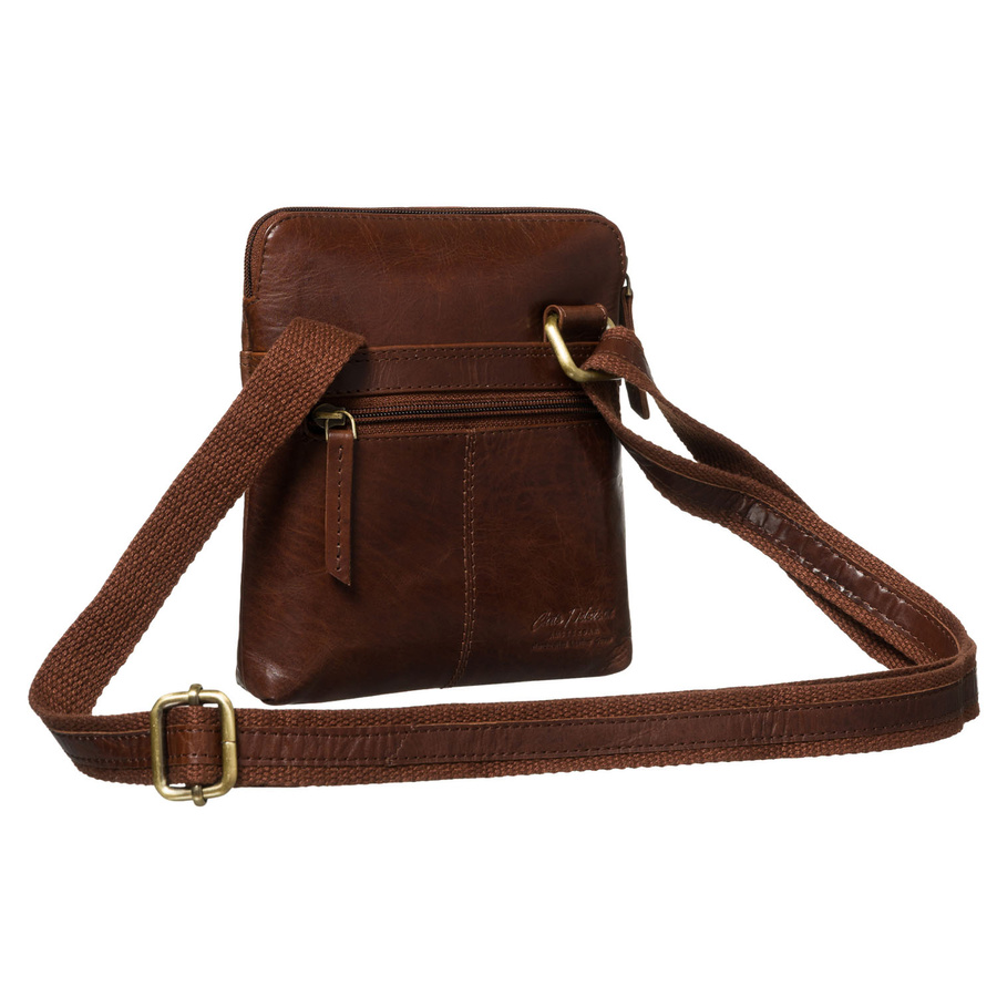 • Męska, brązowa listonoszka wykonana ze skóry naturalnej. Jednokomorowa z 3 dodatkowymi kieszonkami. Zamykana bezpiecznym suwakiem i zawieszona na regulowanym pasku.