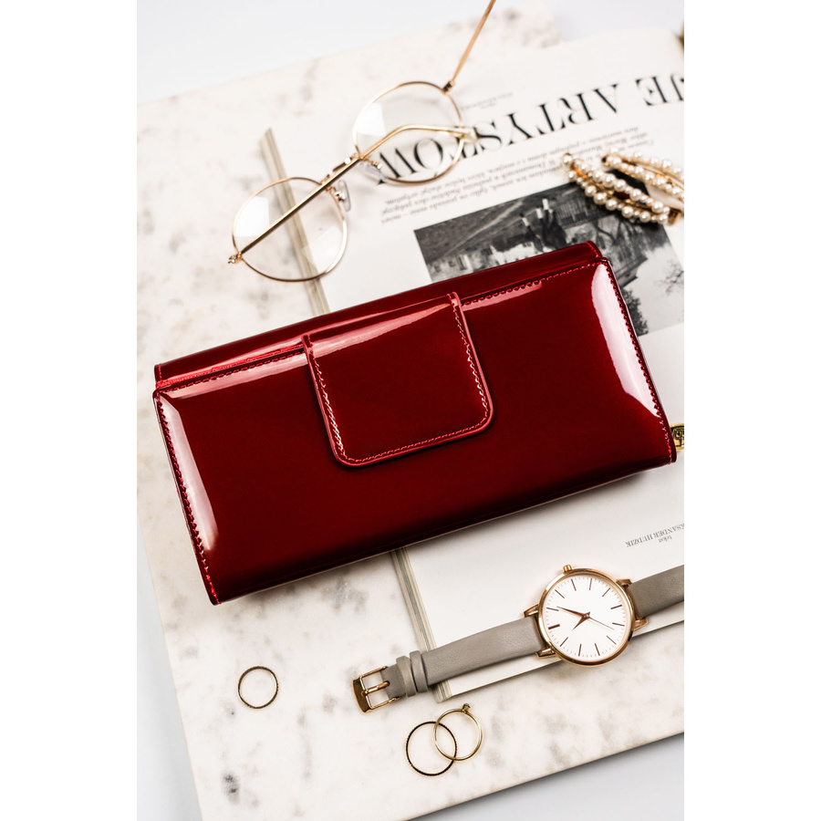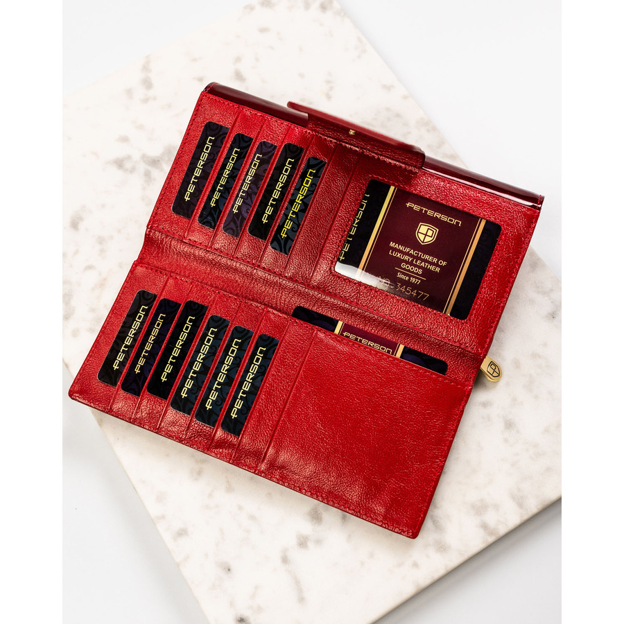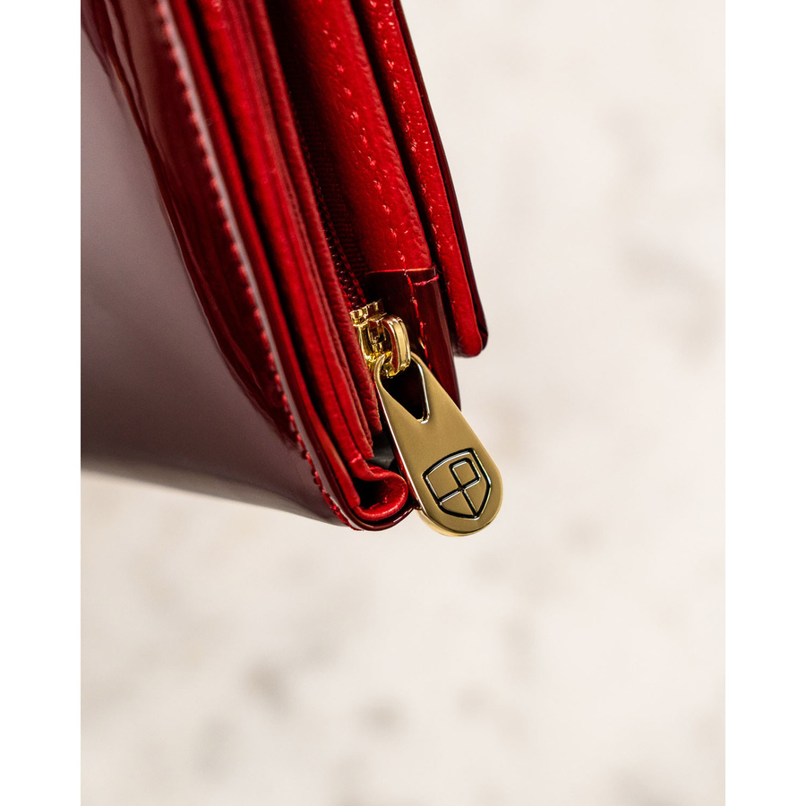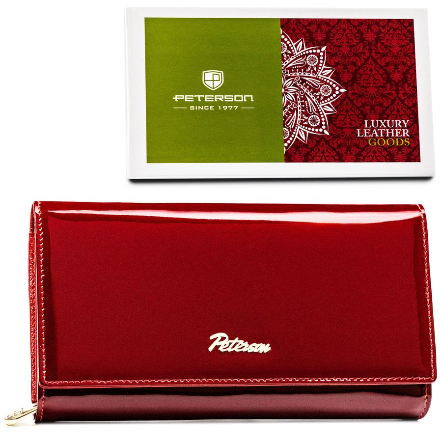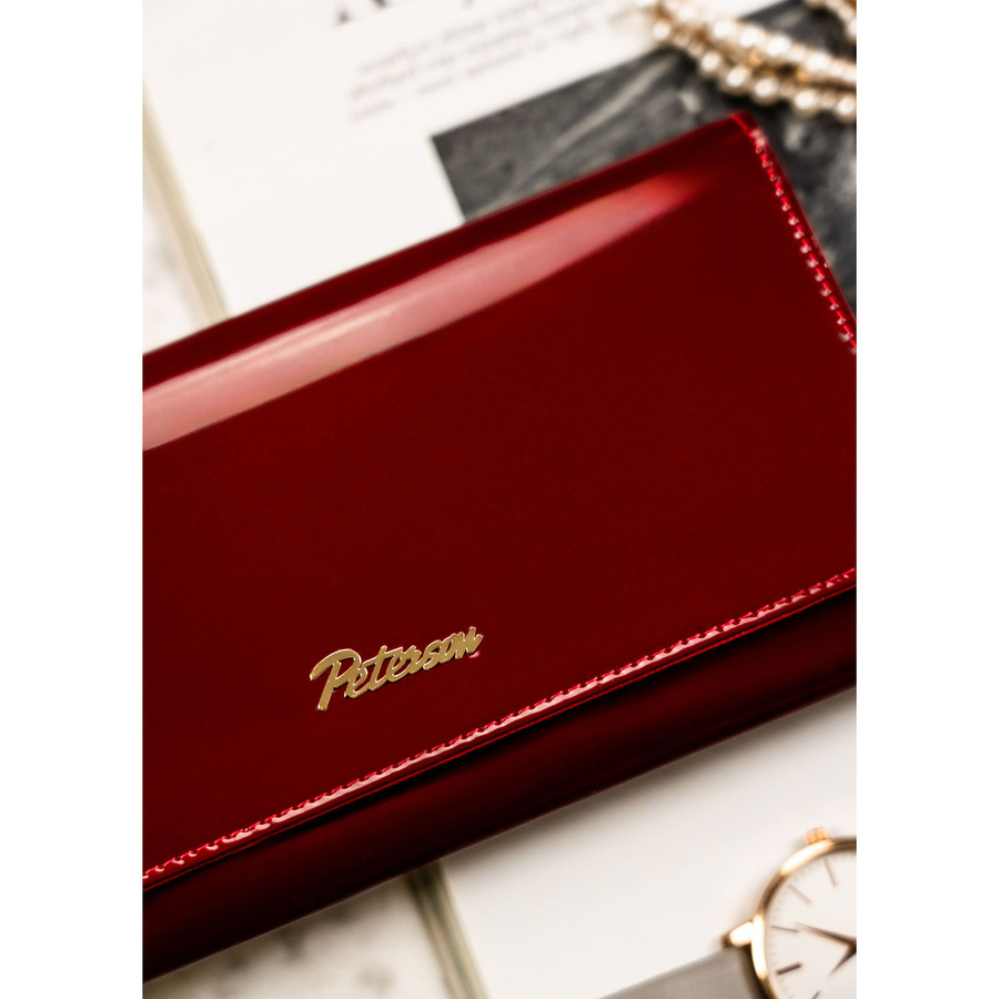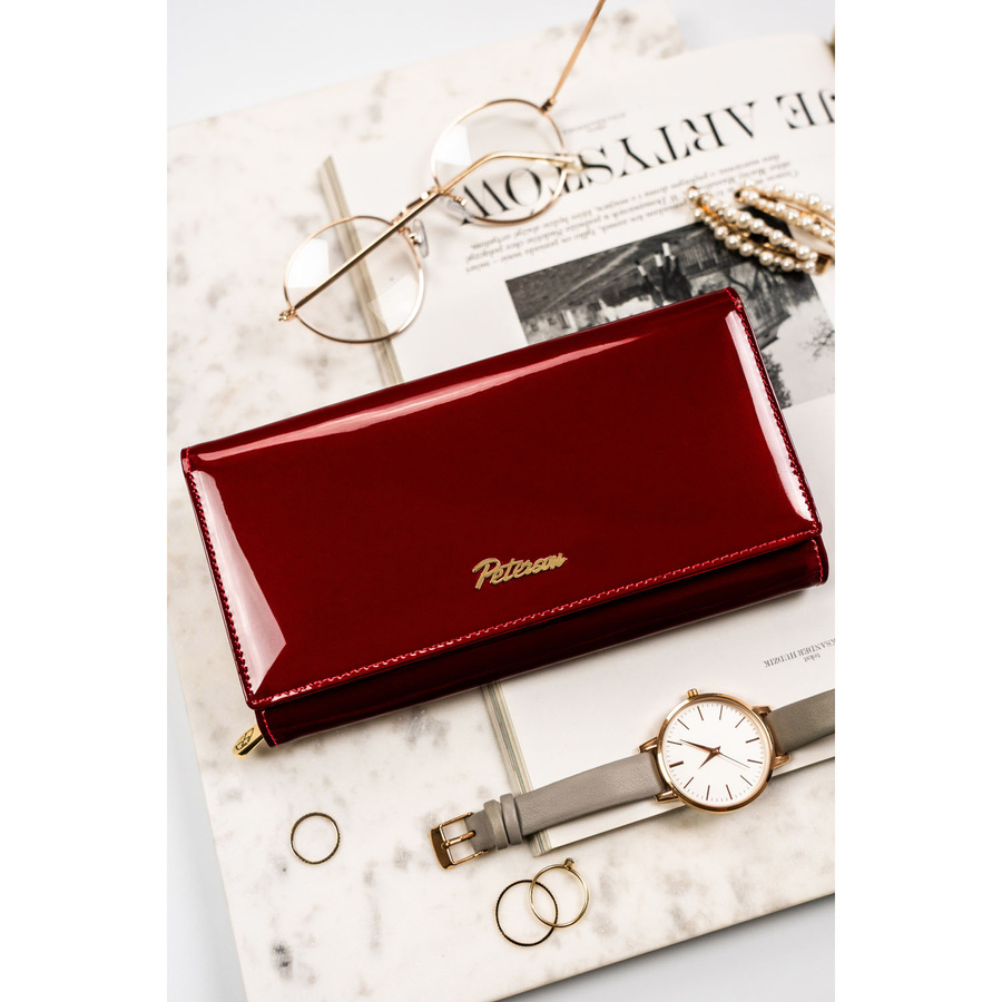 Duży, czerwony portfel damski z lakierowanej skóry naturalnej zamykany na zatrzask - Peterson