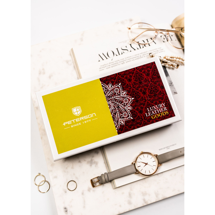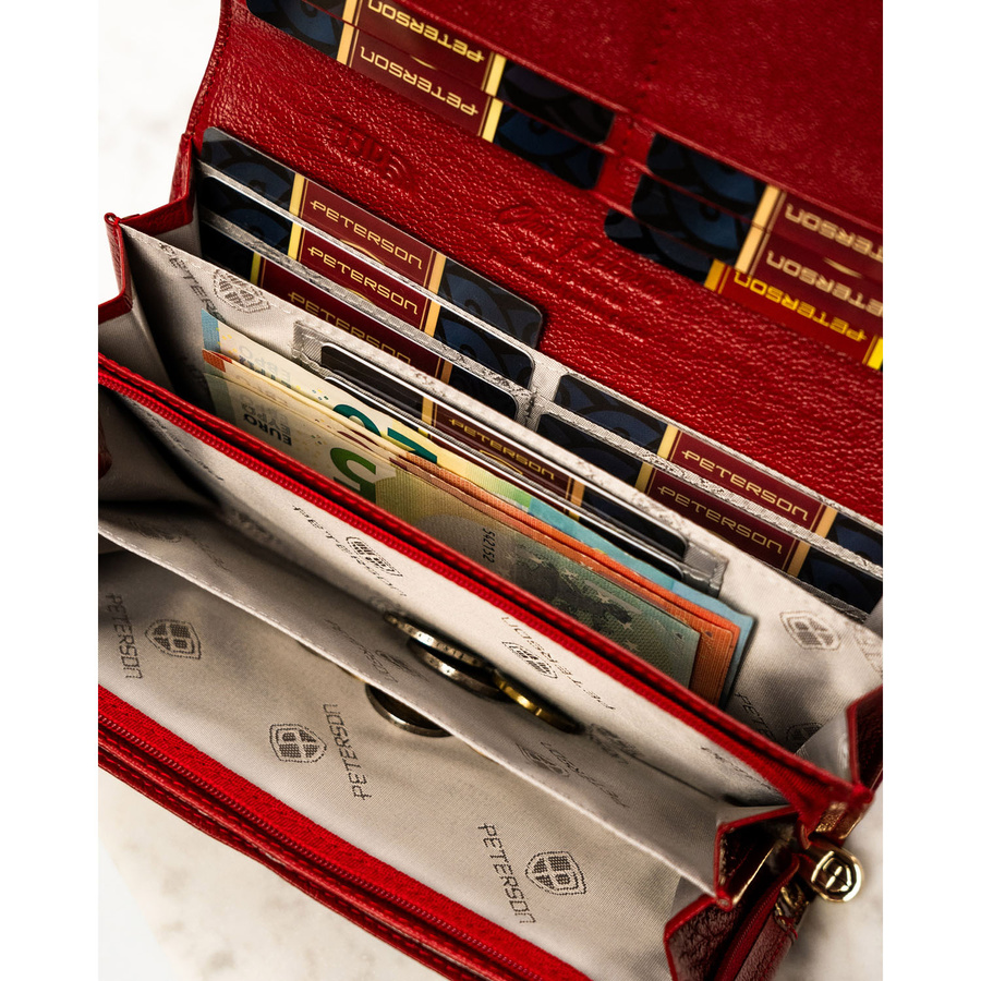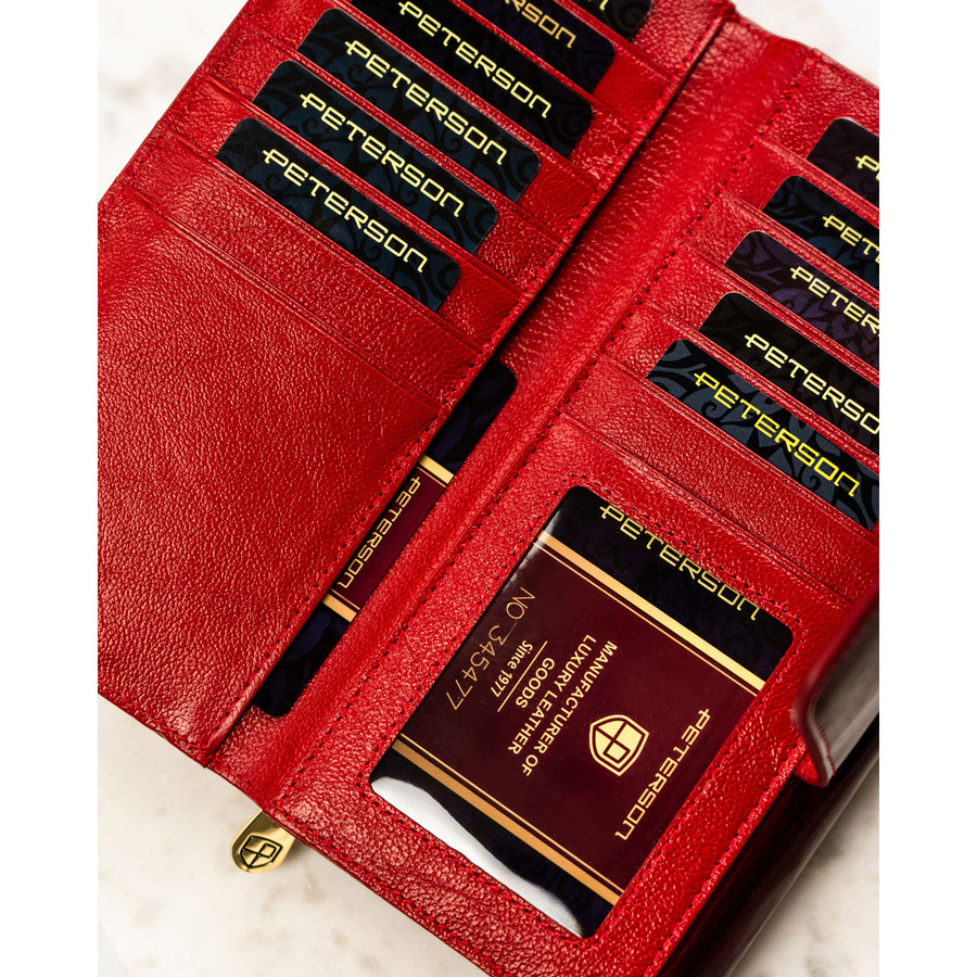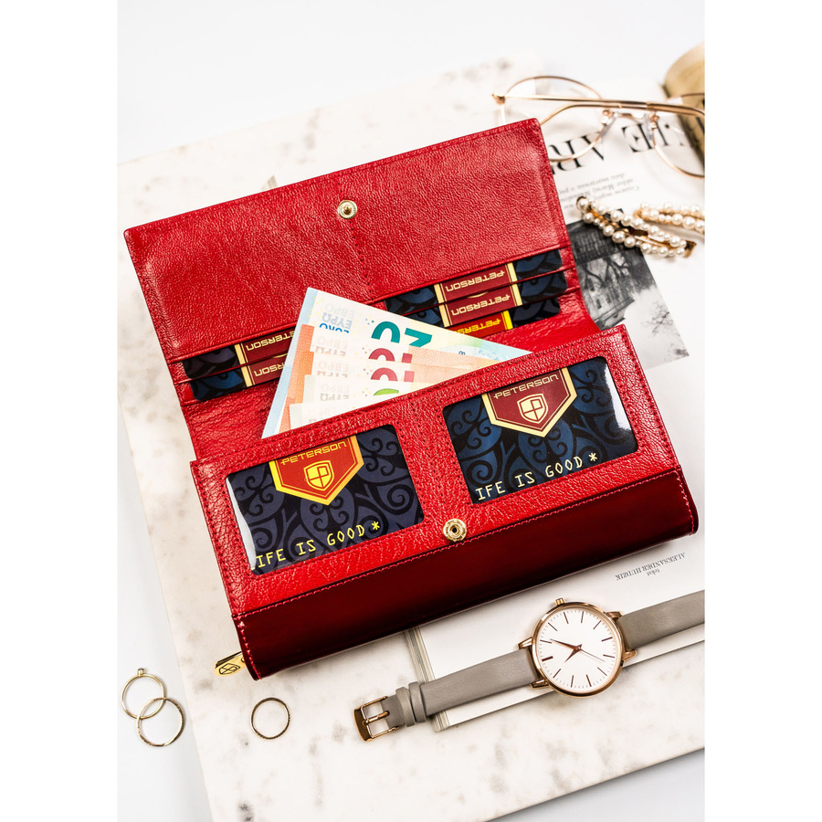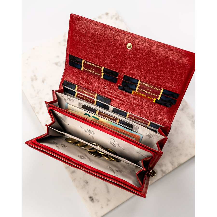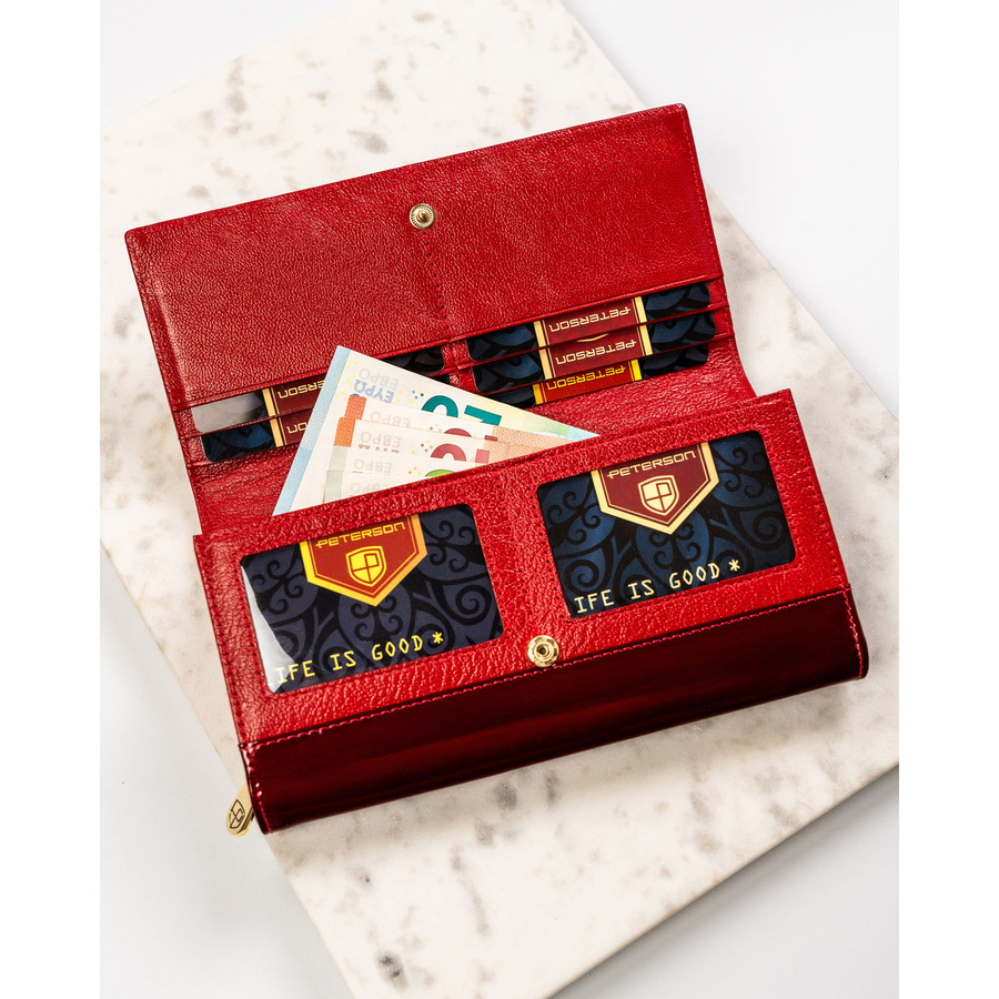 Duży, czerwony portfel damski z lakierowanej skóry naturalnej zamykany na zatrzask - Peterson