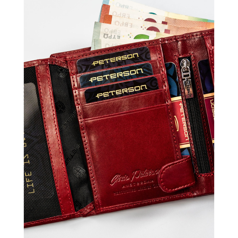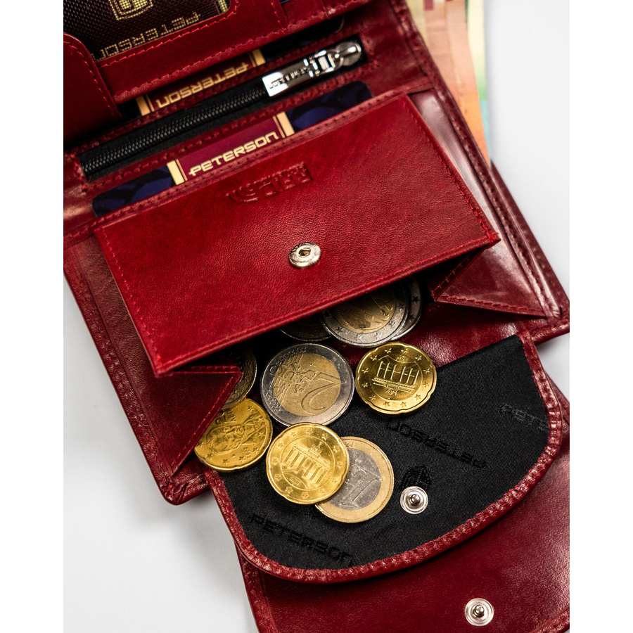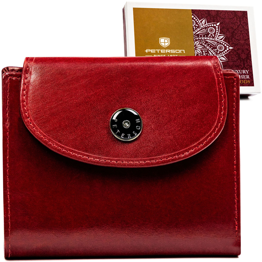 Portfel damski ze skóry naturalnej w czerwonym kolorze zamykany na zatrzask - Peterson
