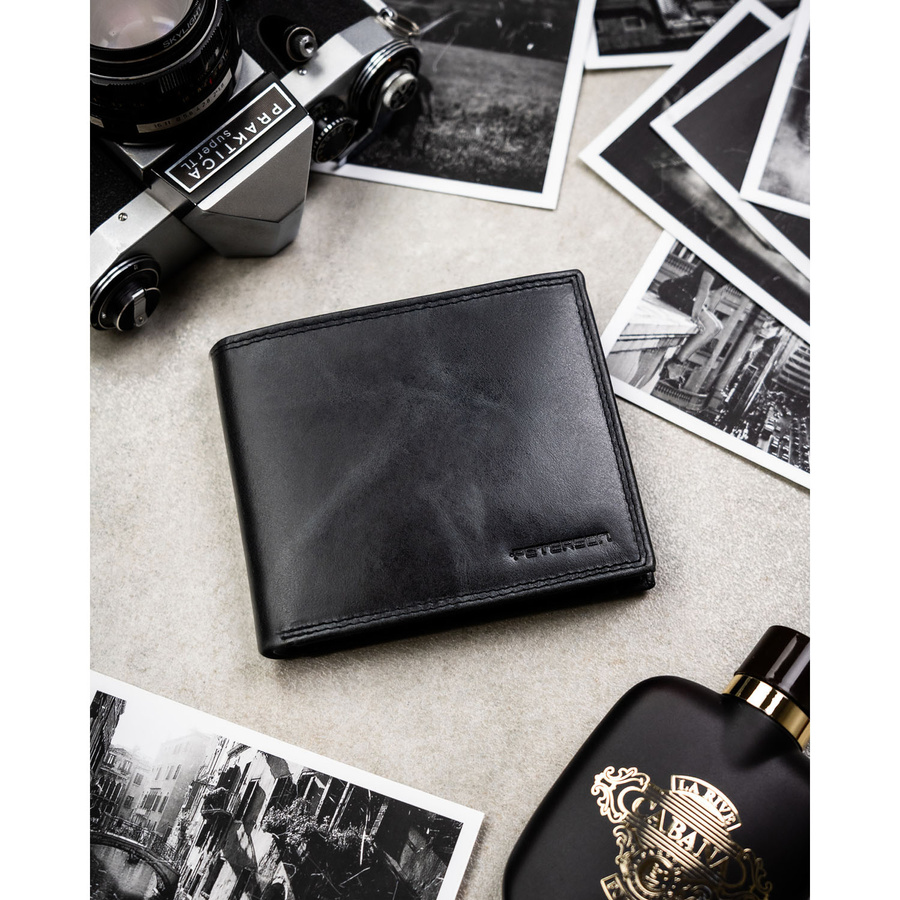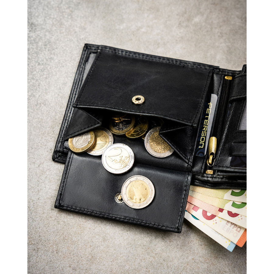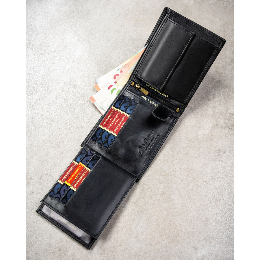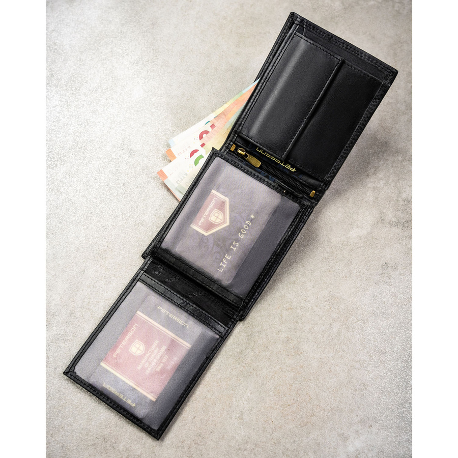 Duży, skórzany portfel męski w czarnym kolorze wyposażony w system RFID - Peterson