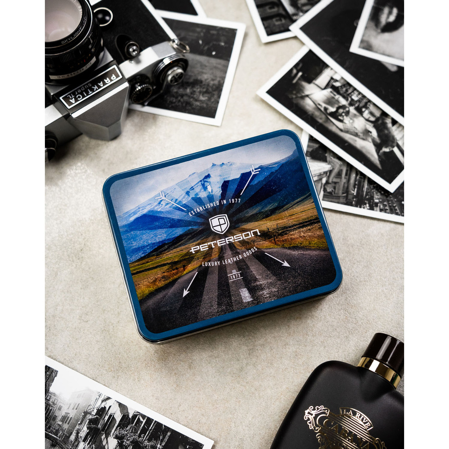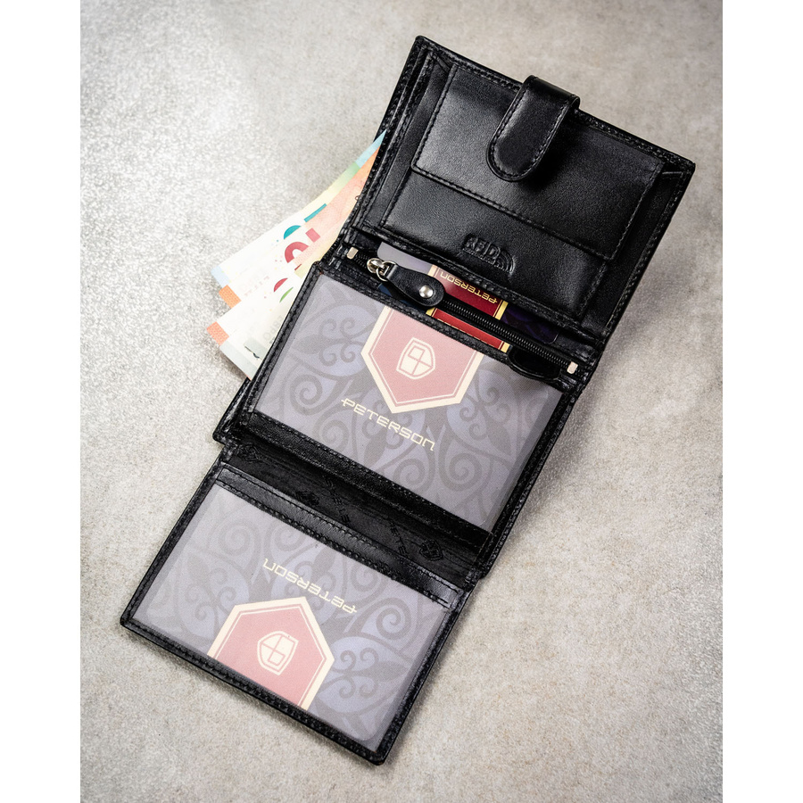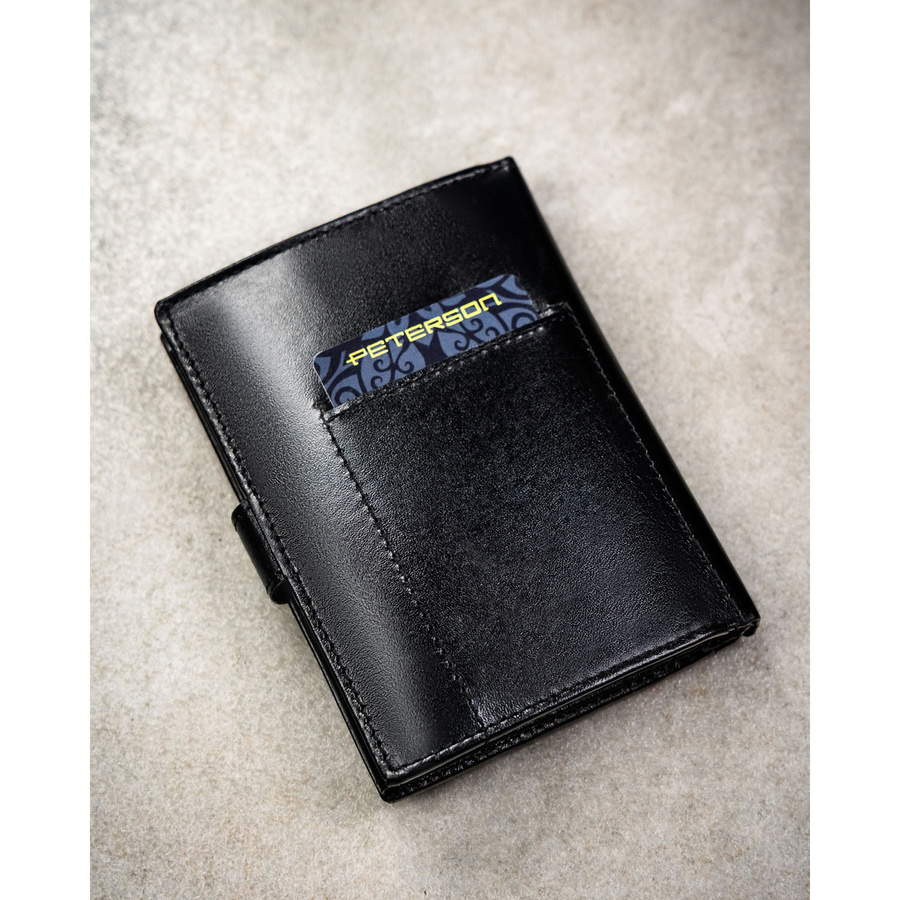 Pionowy portfel męski ze skóry naturalnej w czarnym kolorze w zestawie z brelokiem - Peterson