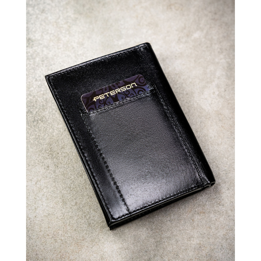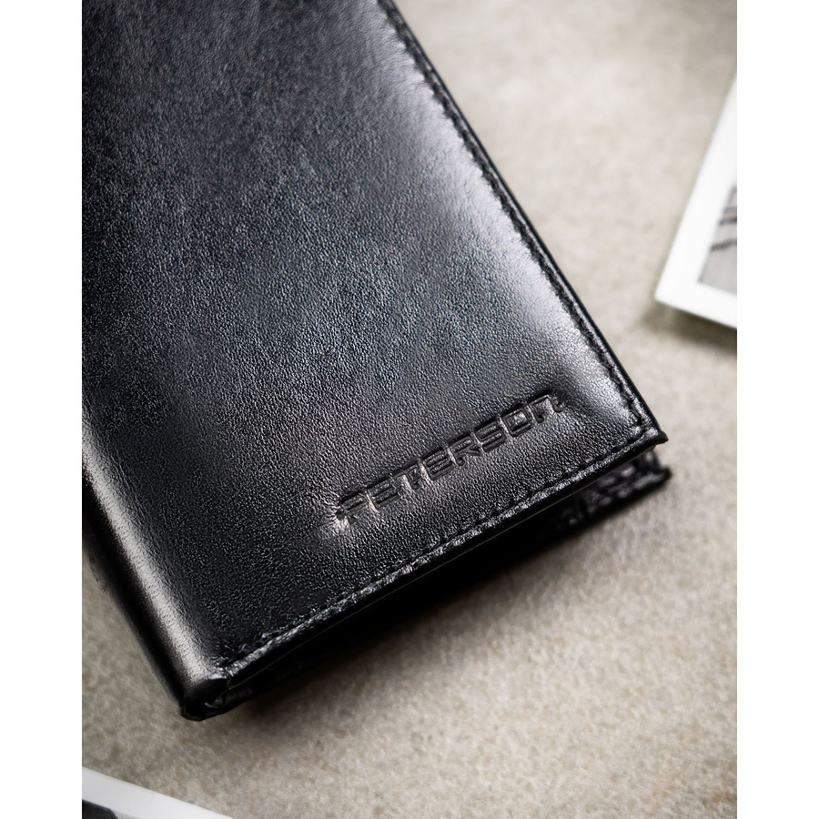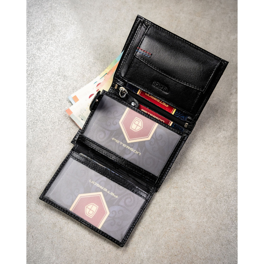 Elegancki portfel męski ze skóry naturalnej w czarnym kolorze w zestawie z brelokiem - Peterson