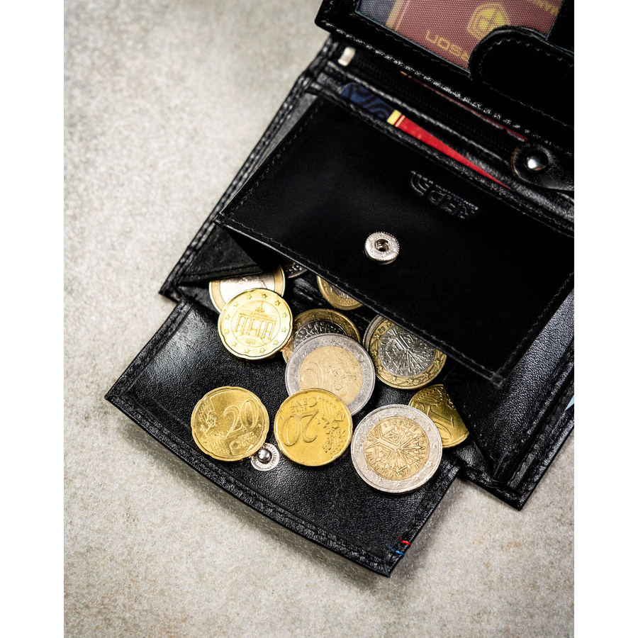 - bilon schowasz w 1 kieszonce zamykanej na bezpieczny zatrzask, która zapobiega wysypywaniu się monet;
