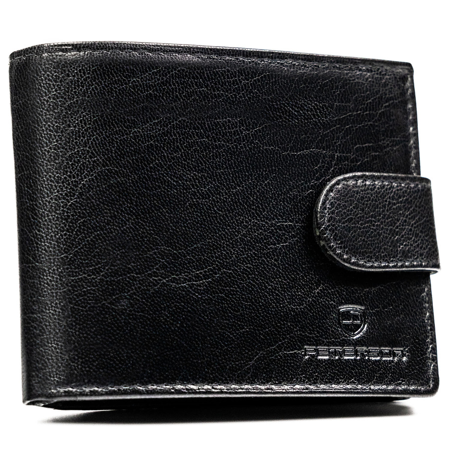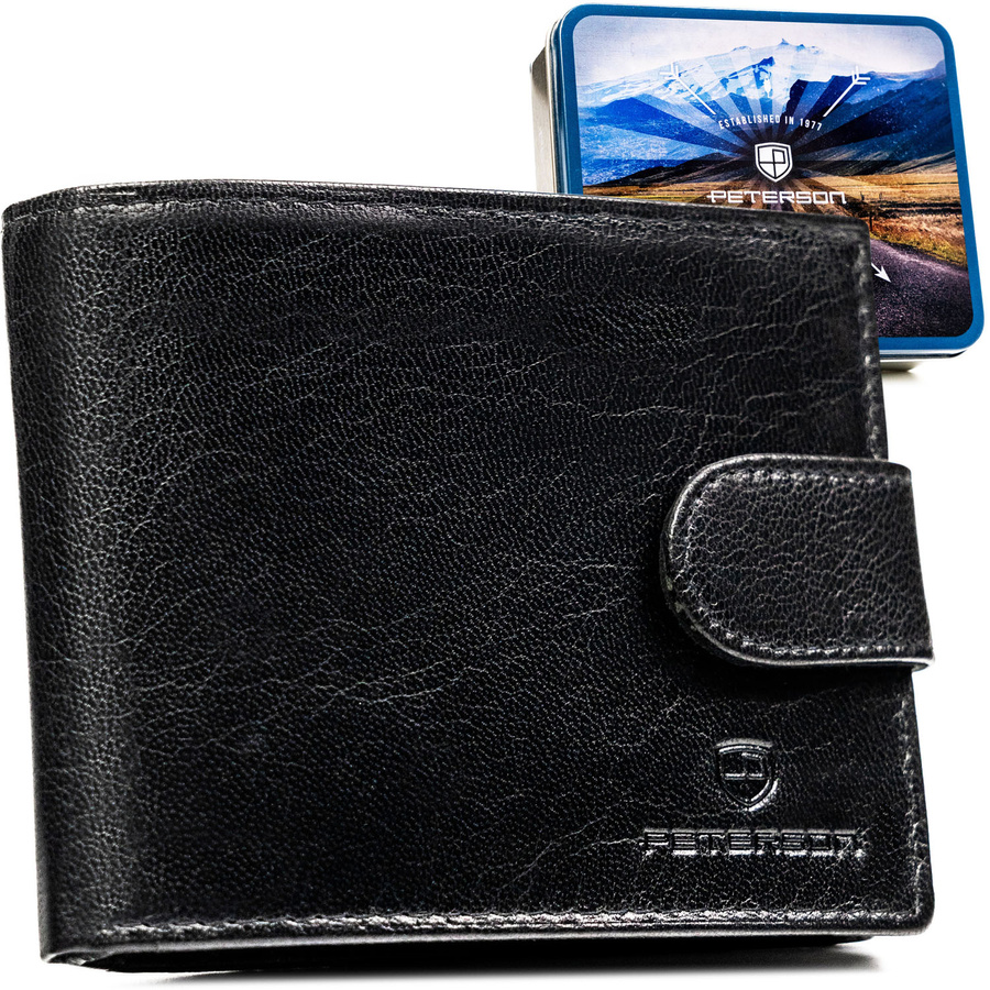 Poziomy portfel męski ze skóry naturalnej w czarnym kolorze w zestawie z brelokiem - Peterson