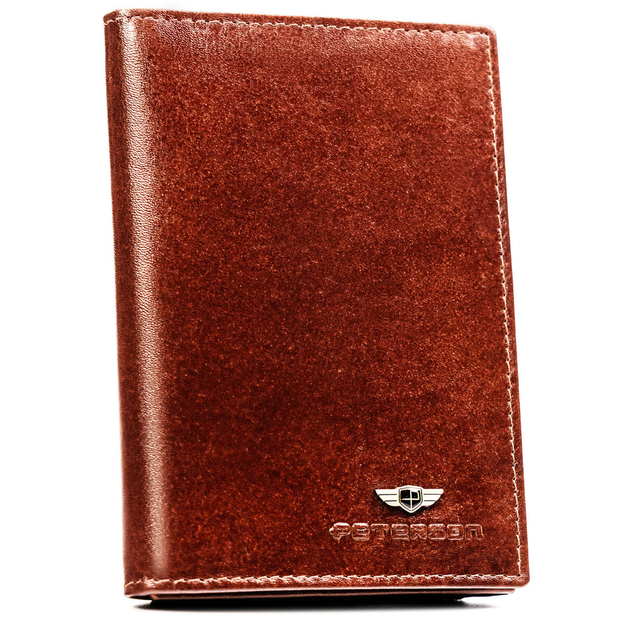 Skórzane, duże etui w brązowym kolorze przeznaczone na dokumenty i karty - Peterson