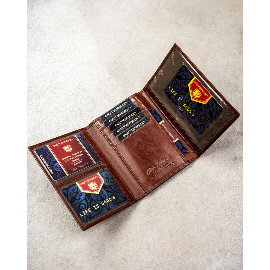 Stylowe etui na dokumenty wykonane z wysokogatunkowej, naturalnej skóry. Smukła, klasyczna forma i subtelne logo PETERSON® sprawiają, że to dodatek idealny do garnituru, płaszcza czy codziennej torby. Sprawdzi się zarówno u kierowcy, jak i u każdego, kto chce mieć najważniejsze dokumenty zawsze pod ręką – w estetycznym i bezpiecznym wydaniu.