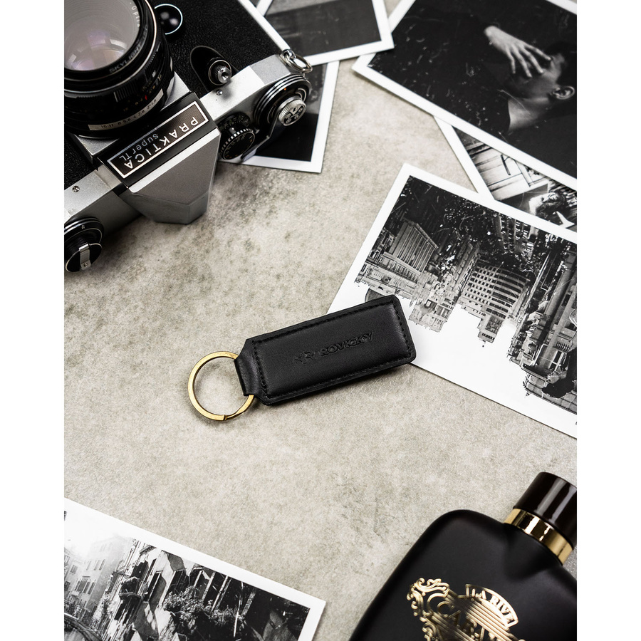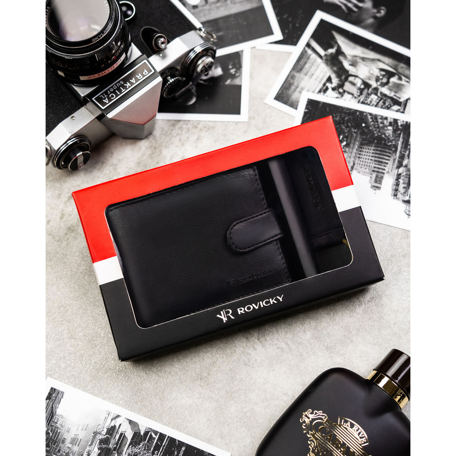 Zestaw prezentowy: męski, czarny portfel ze skóry ekologicznej i brelok do kluczy - Rovicky