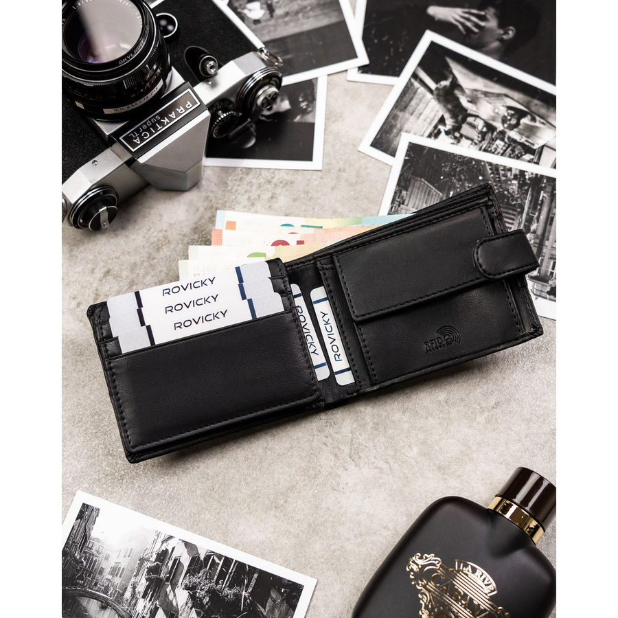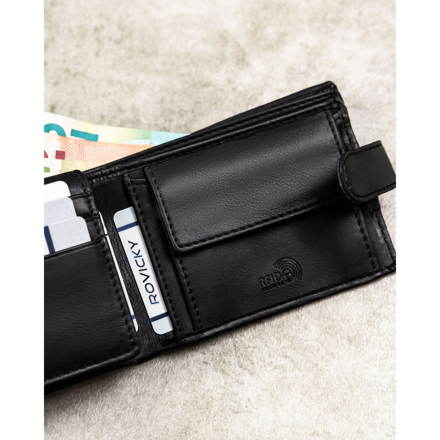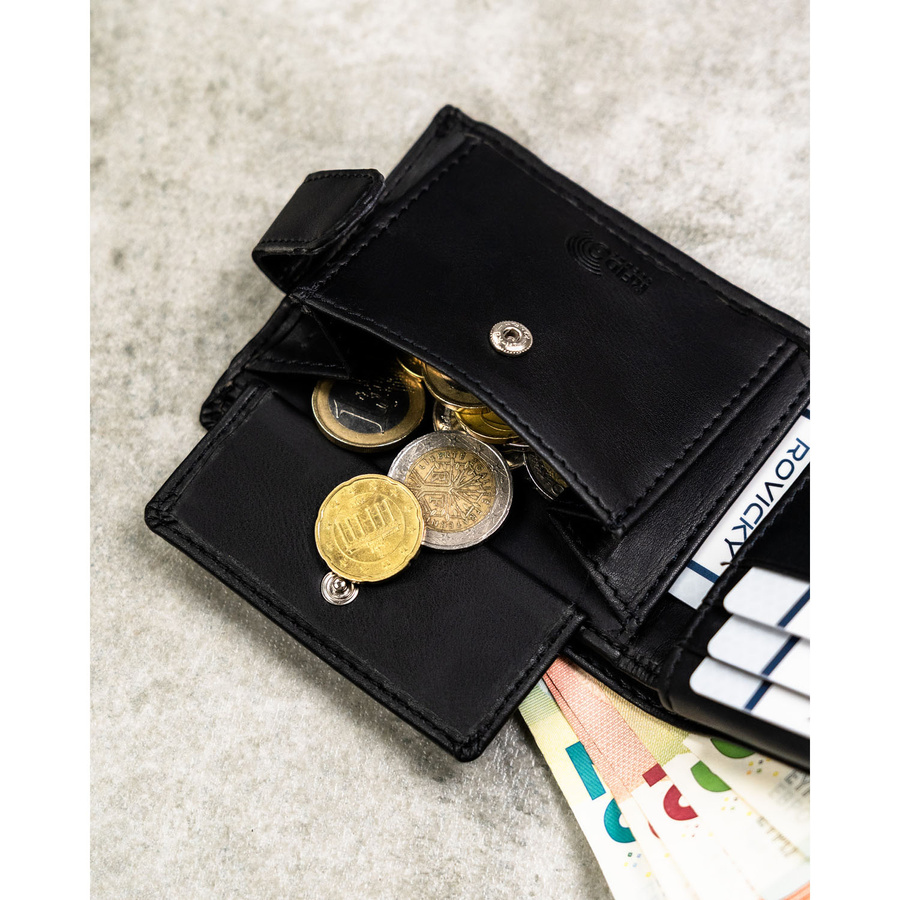 - 1 kieszeń na bilon – zamykana na zatrzask, chroni monety przed wypadaniem i ułatwia szybki dostęp. To funkcjonalne rozwiązanie sprawia, że portfel doskonale sprawdzi się w codziennym użytkowaniu, niezależnie od sytuacji.