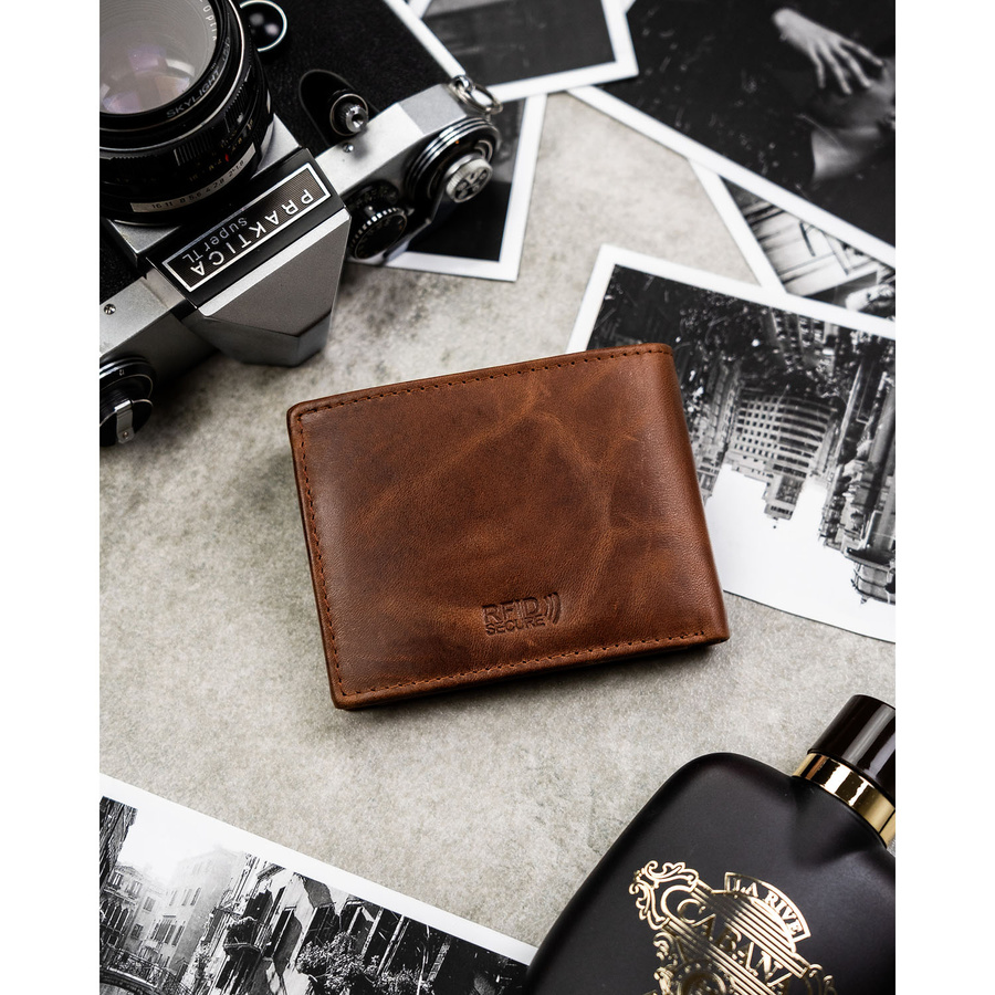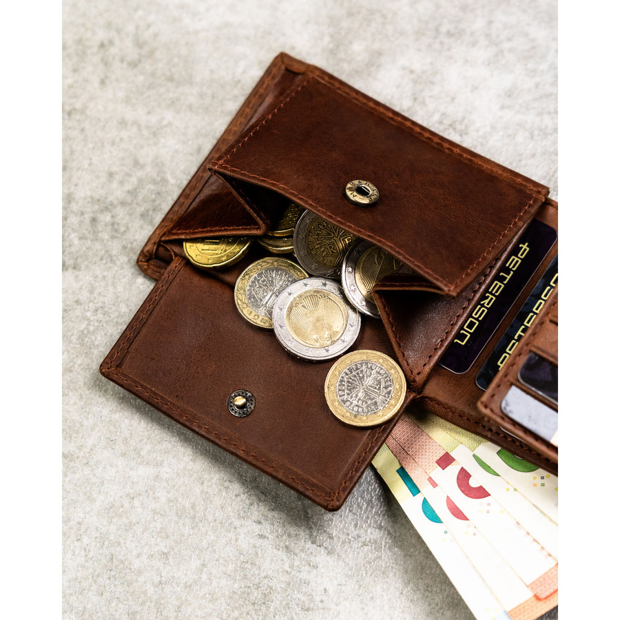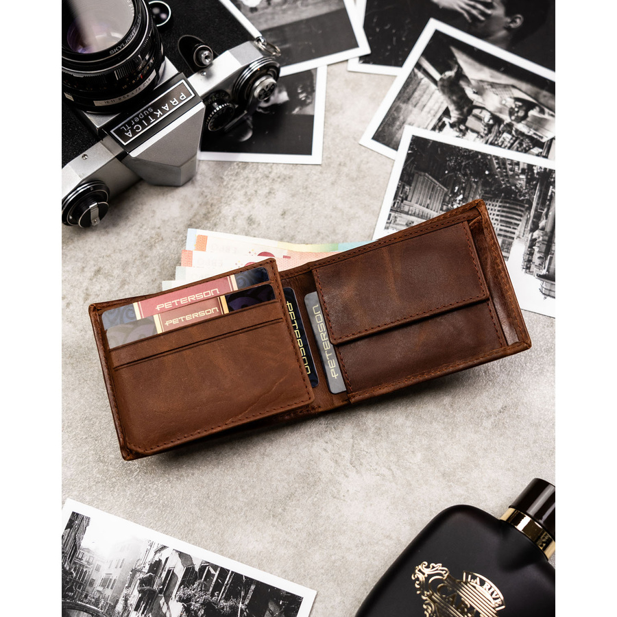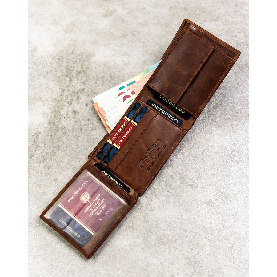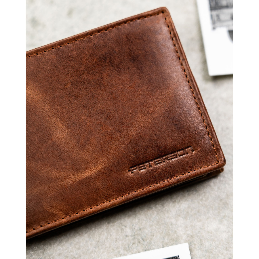 Jasnobrązowy portfel męski ze skóry naturalnej bez zapięcia zewnętrznego - Peterson