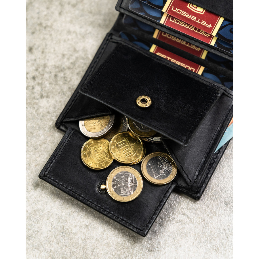 Pionowy, czarny portfel męski ze skóry naturalnej wyposażony w system RFID - Peterson
