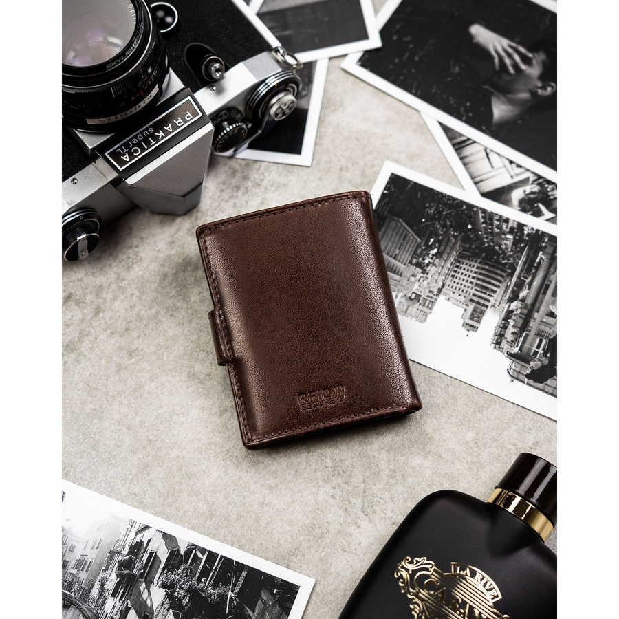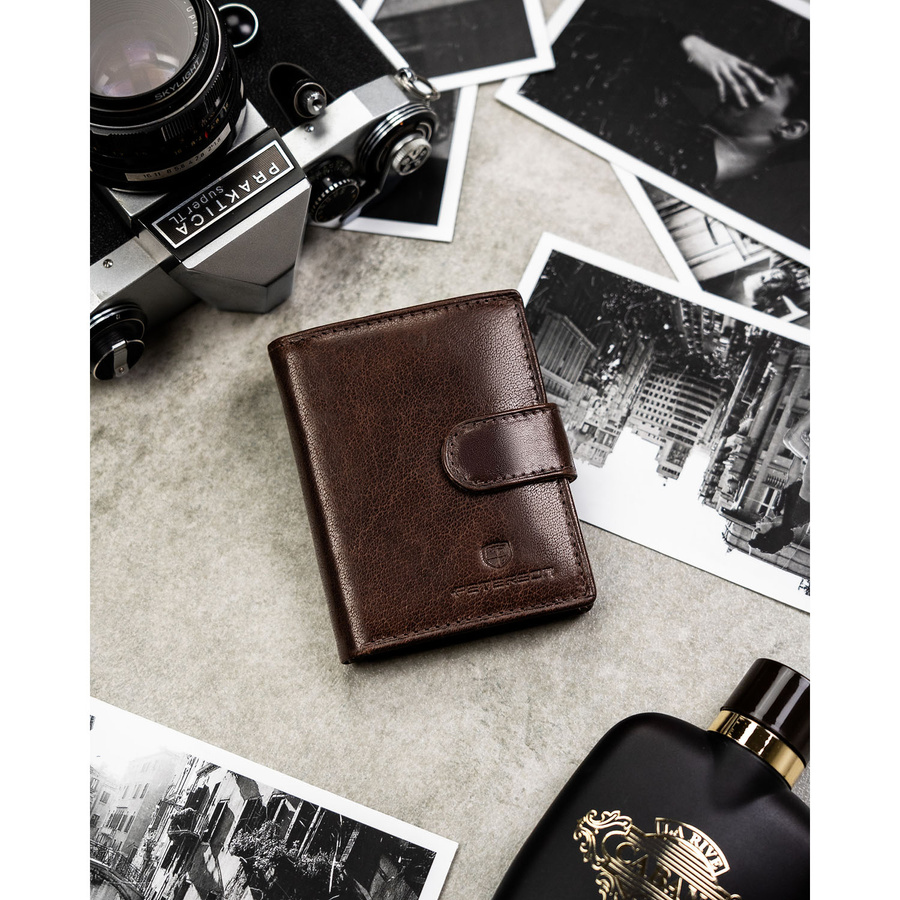 Portfel męski ze skóry naturalnej w brązowym kolorze, model zamykany zatrzaskiem - Peterson