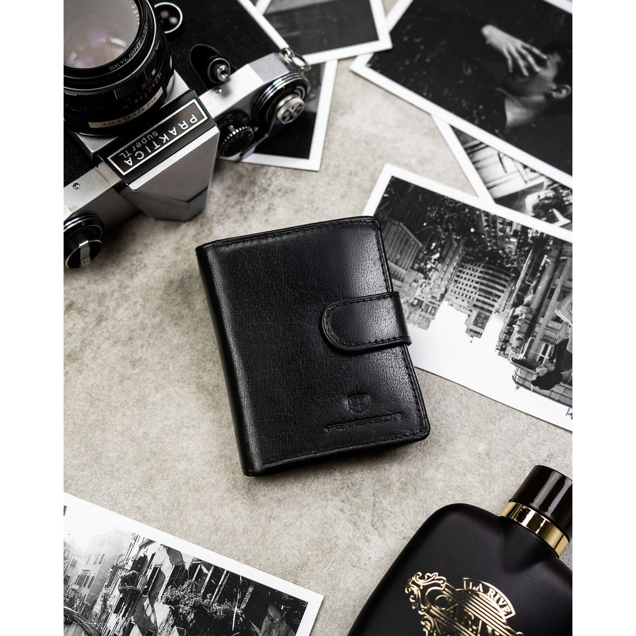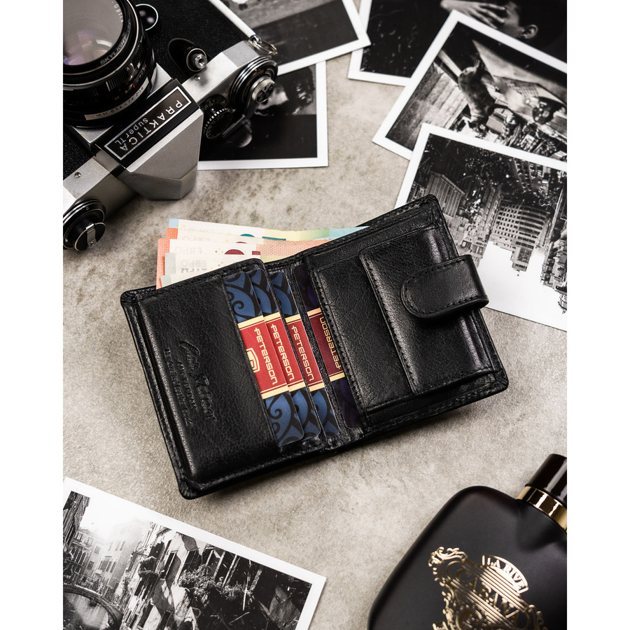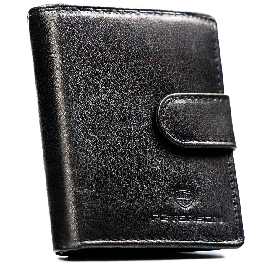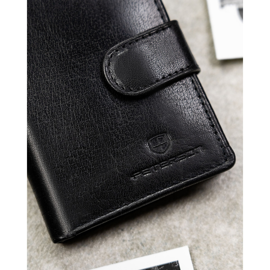 Portfel męski ze skóry naturalnej w czarnym kolorze, model zamykany zatrzaskiem - Peterson