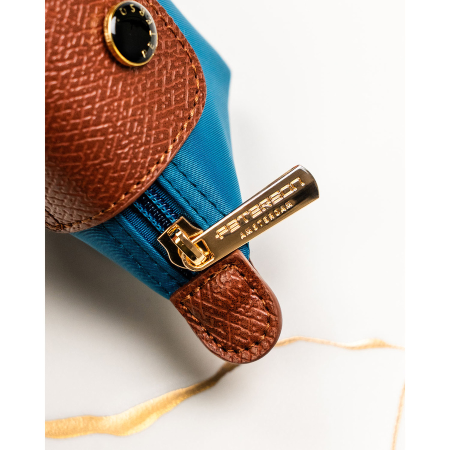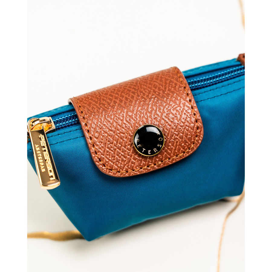 Etui na klucze wykonane z poliestru i skóry ekologicznej w turkusowym kolorze - Peterson