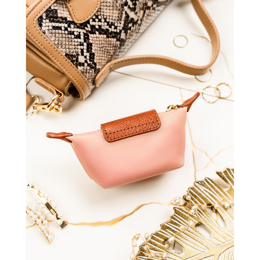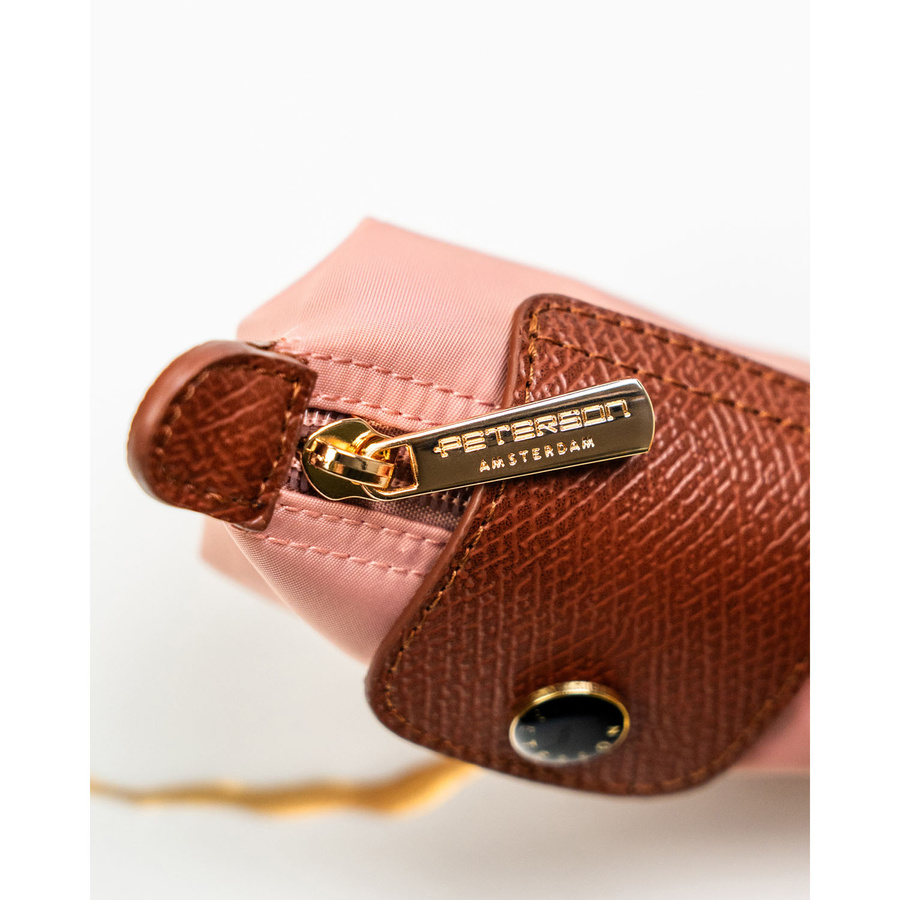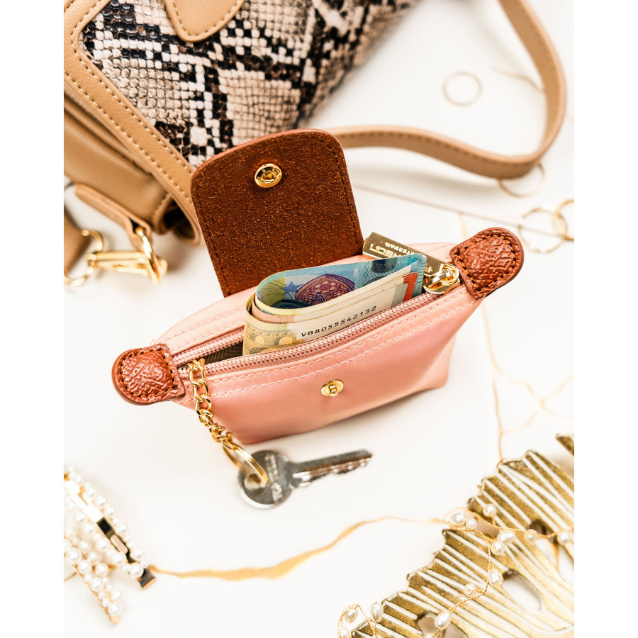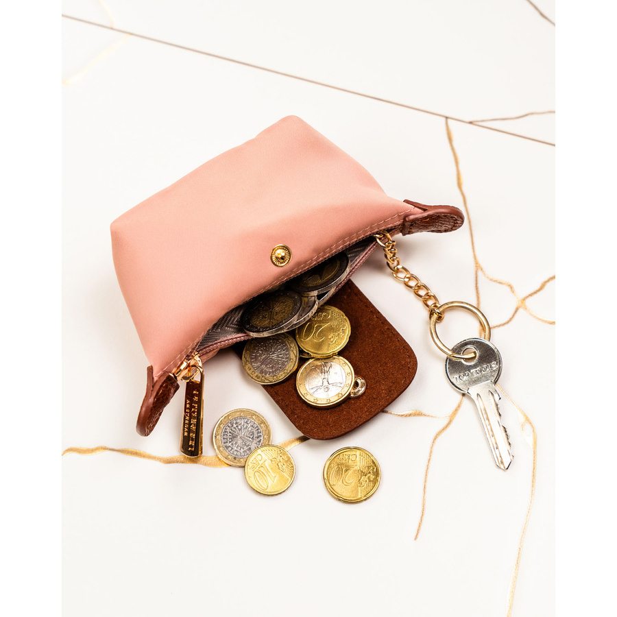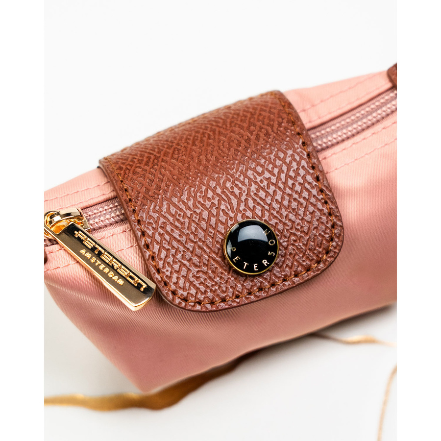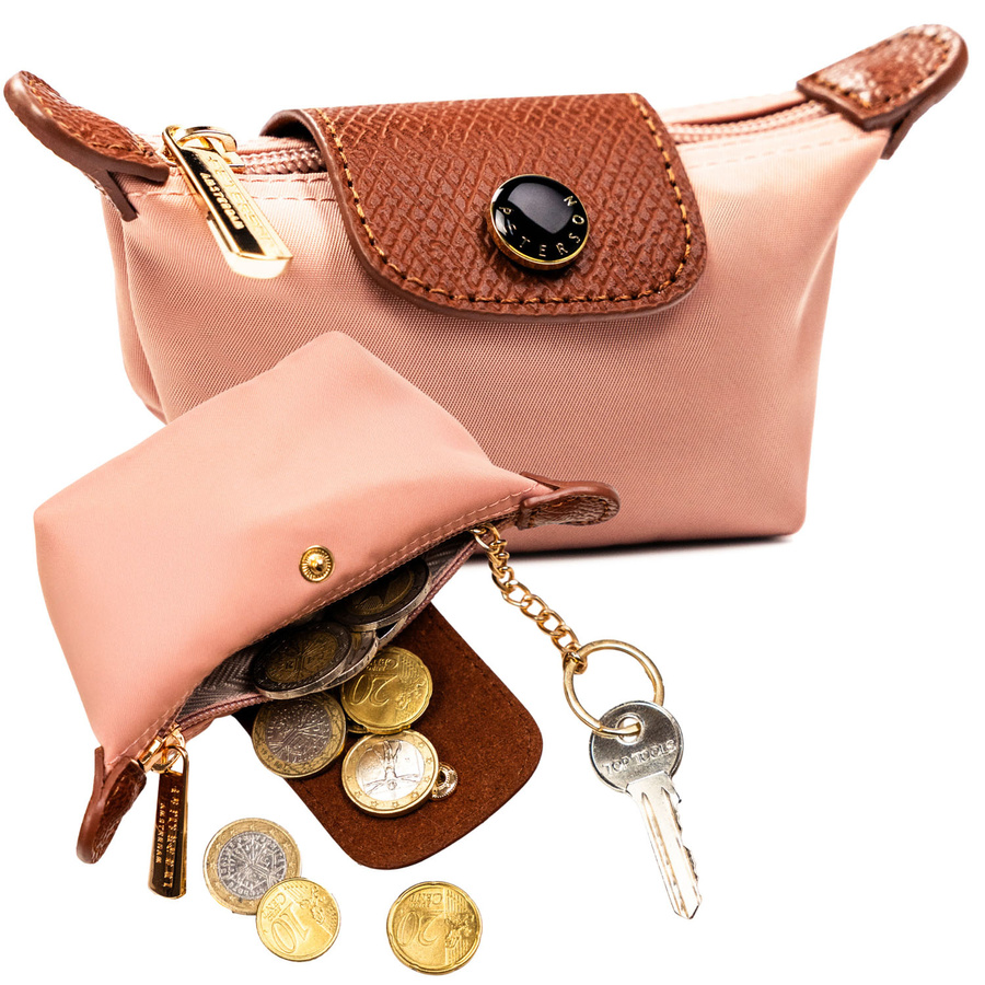 Różowe etui na klucze z poliestru i skóry ekologicznej zamykane zatrzaskiem i suwakiem - Peterson