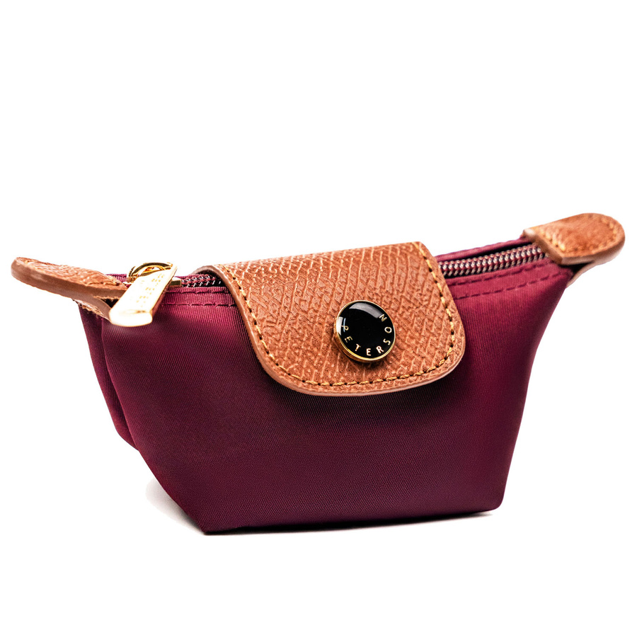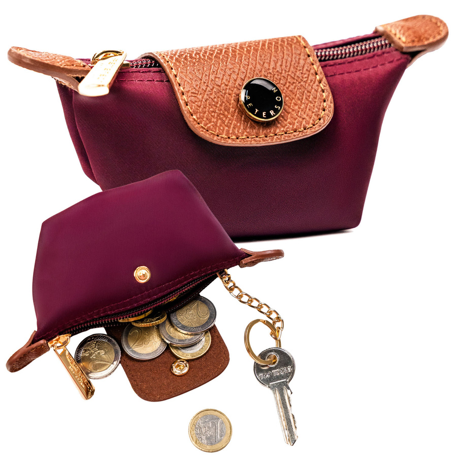 Bordowe etui na klucze z poliestru i skóry ekologicznej zamykane zatrzaskiem i suwakiem - Peterson
