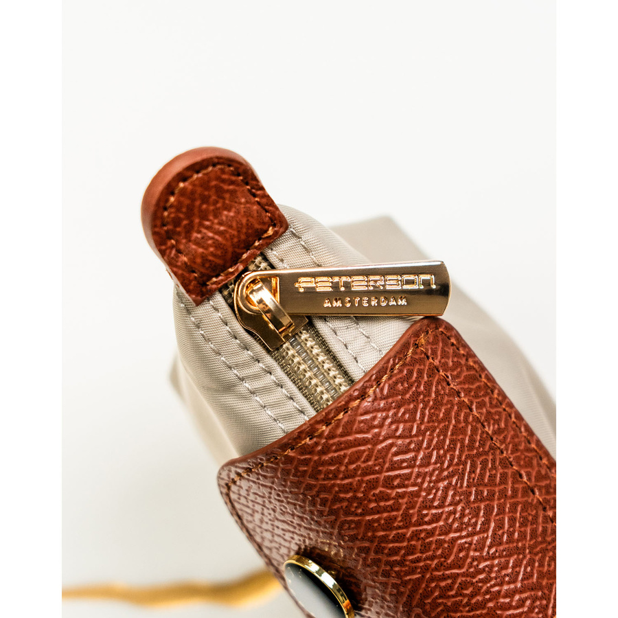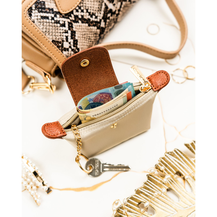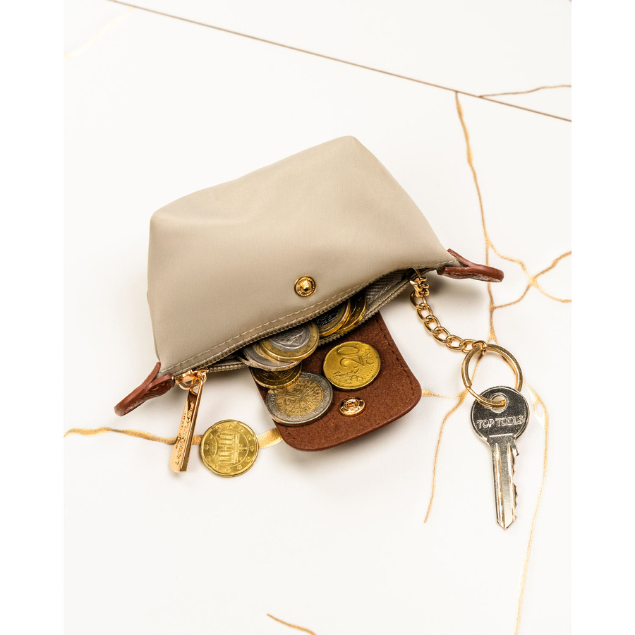 Etui na klucze z poliestru i skóry ekologicznej w jasnobeżowym kolorze, zamykane na zatrzask i suwak - Peterson