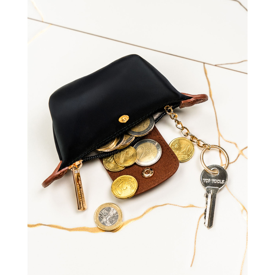 To funkcjonalne etui na klucze z powodzeniem może zastąpić małą portmonetkę. Praktyczna, zapinana na zamek komora pozwala wygodnie przechowywać drobne monety, złożone banknoty, a nawet kartę płatniczą lub bilet. Dzięki temu wszystko, co najważniejsze, możesz mieć w jednym miejscu - bez konieczności zabierania dodatkowego portfela. To idealne rozwiązanie na szybkie wyjście z domu, zakupy, spacer czy podróż, kiedy liczy się lekkość, porządek i maksymalna wygoda.
