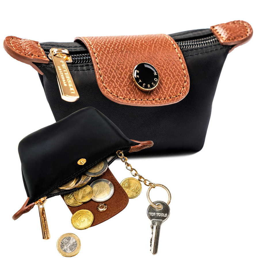 Czarne etui na klucze z poliestru i skóry ekologicznej zamykane na zatrzask i suwak - Peterson