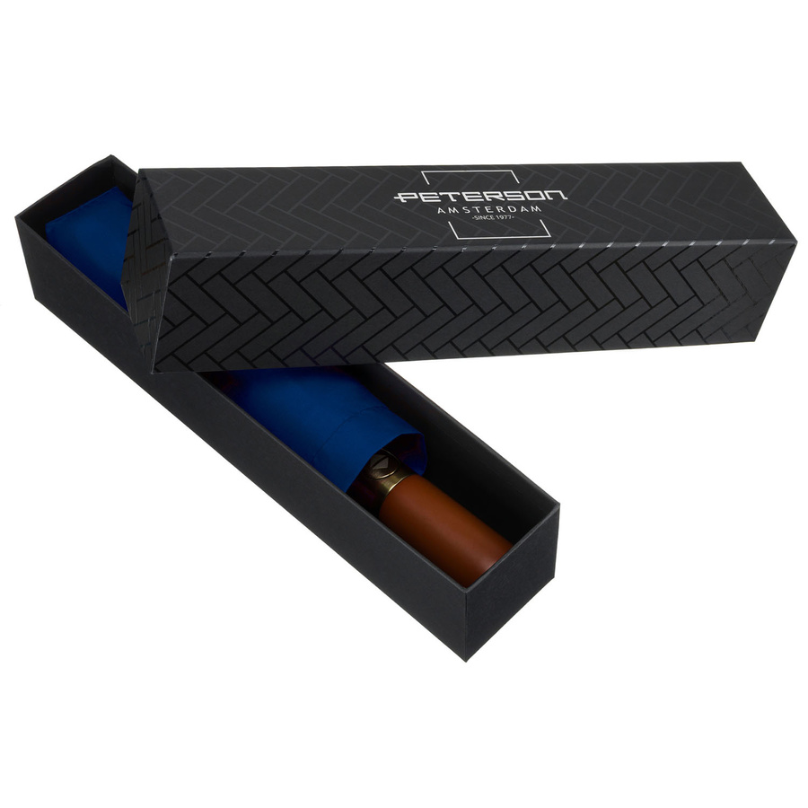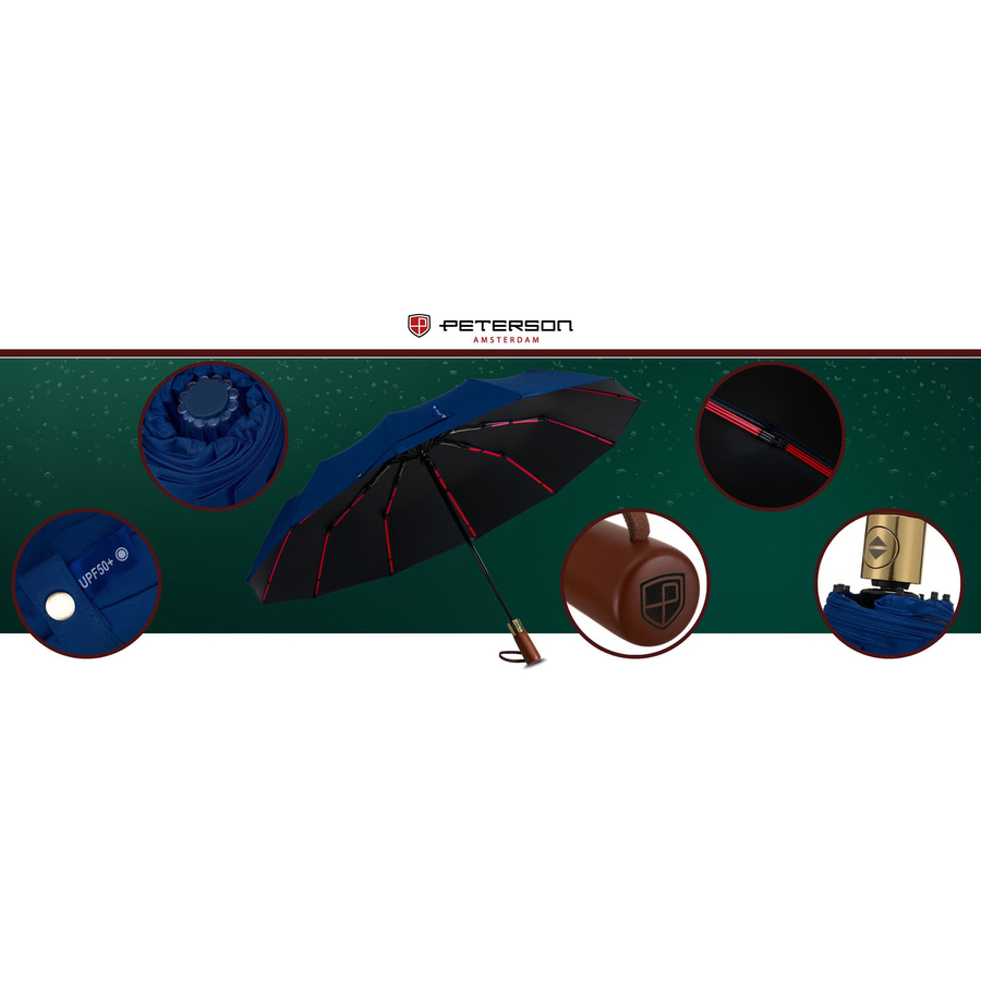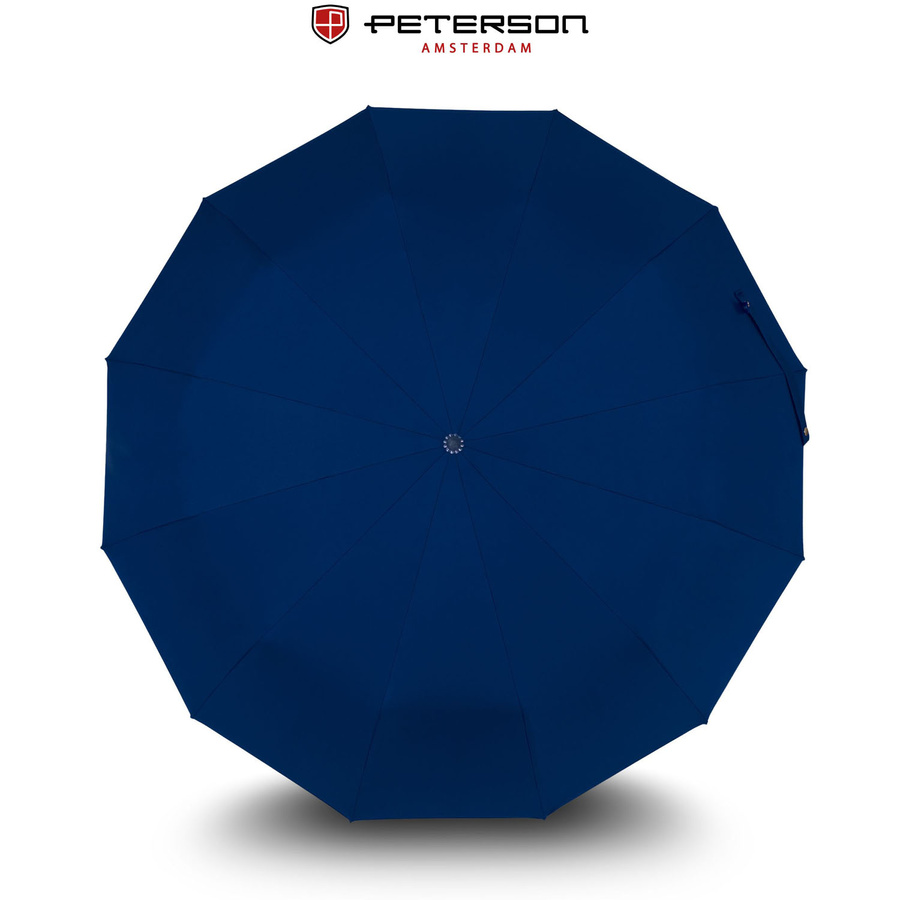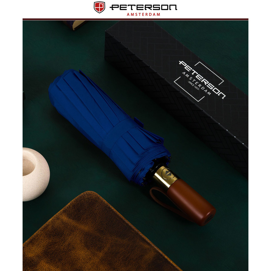 Niebieski, duży, elegancki i składany parasol w pokrowcu - Peterson